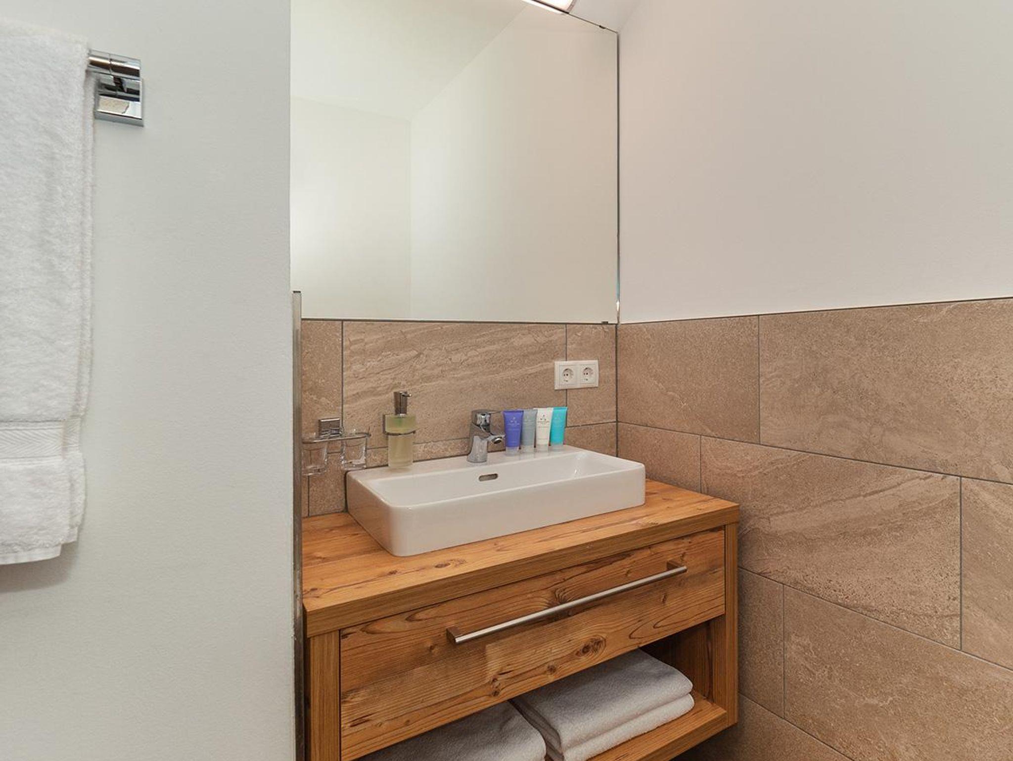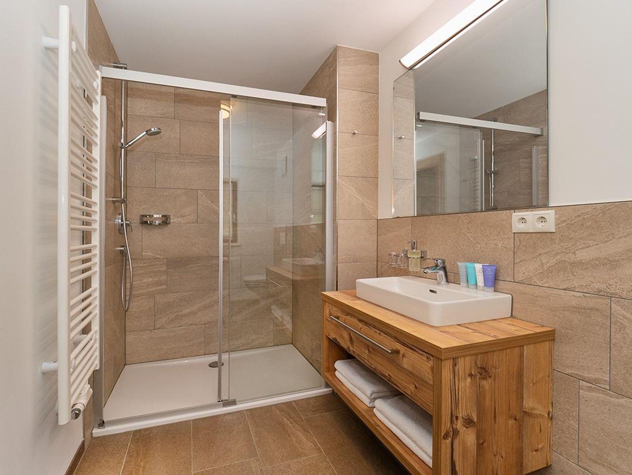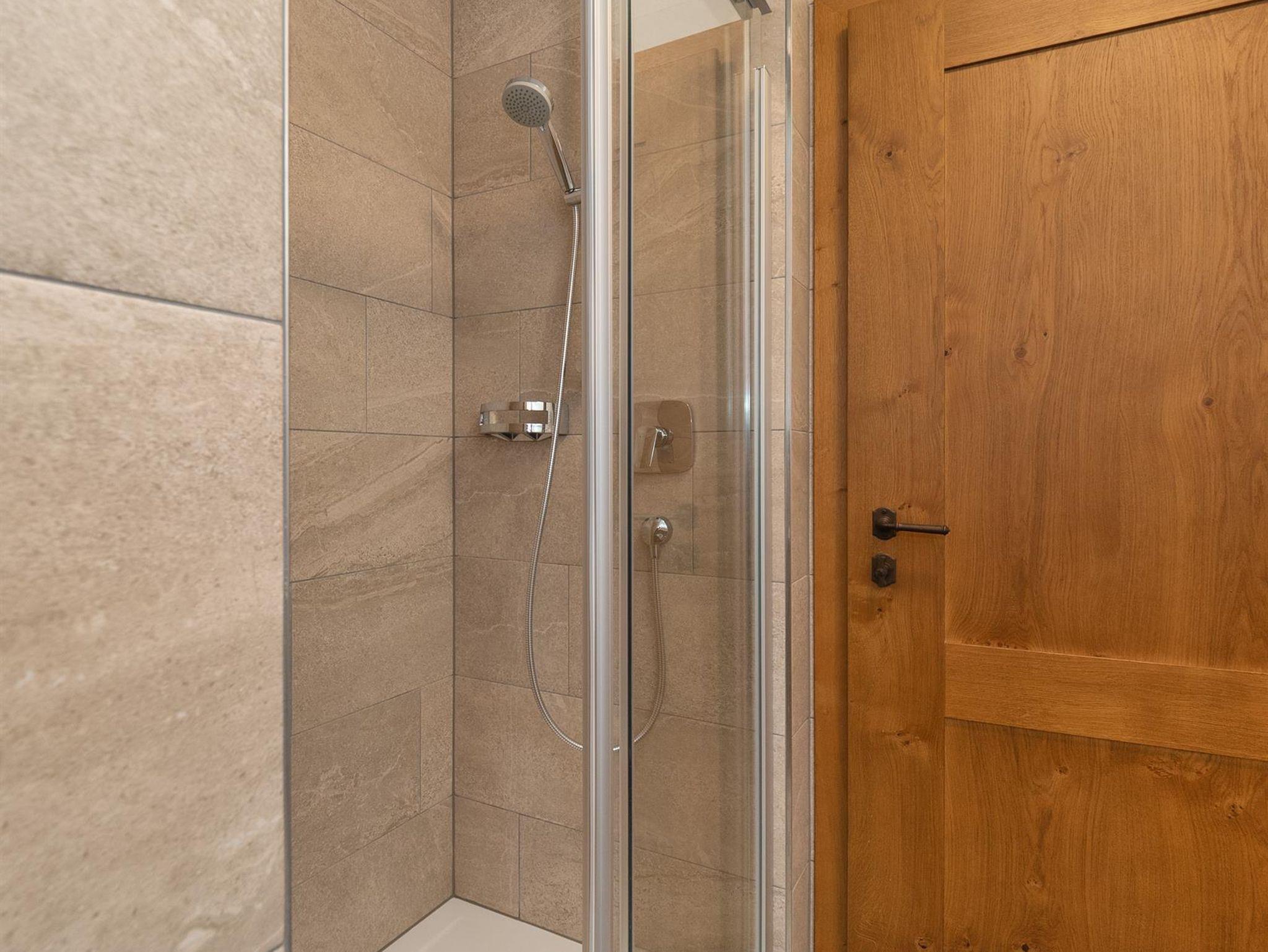 Die drei großzügigen, rustikalen Schlafzimmer im ersten Stock sind mit einem bequemen, teilbarem Boxspring-Doppelbett, einem geräumigen Kleiderschrank und einem Nachttischchen ausgestattet. Jedes unserer Schlafzimmer verfügt über ein eigenes modernes Badezimmer mit Waschbecken, Dusche oder Badewanne, WC, Haarföhn und einem Handtuchtrockner.