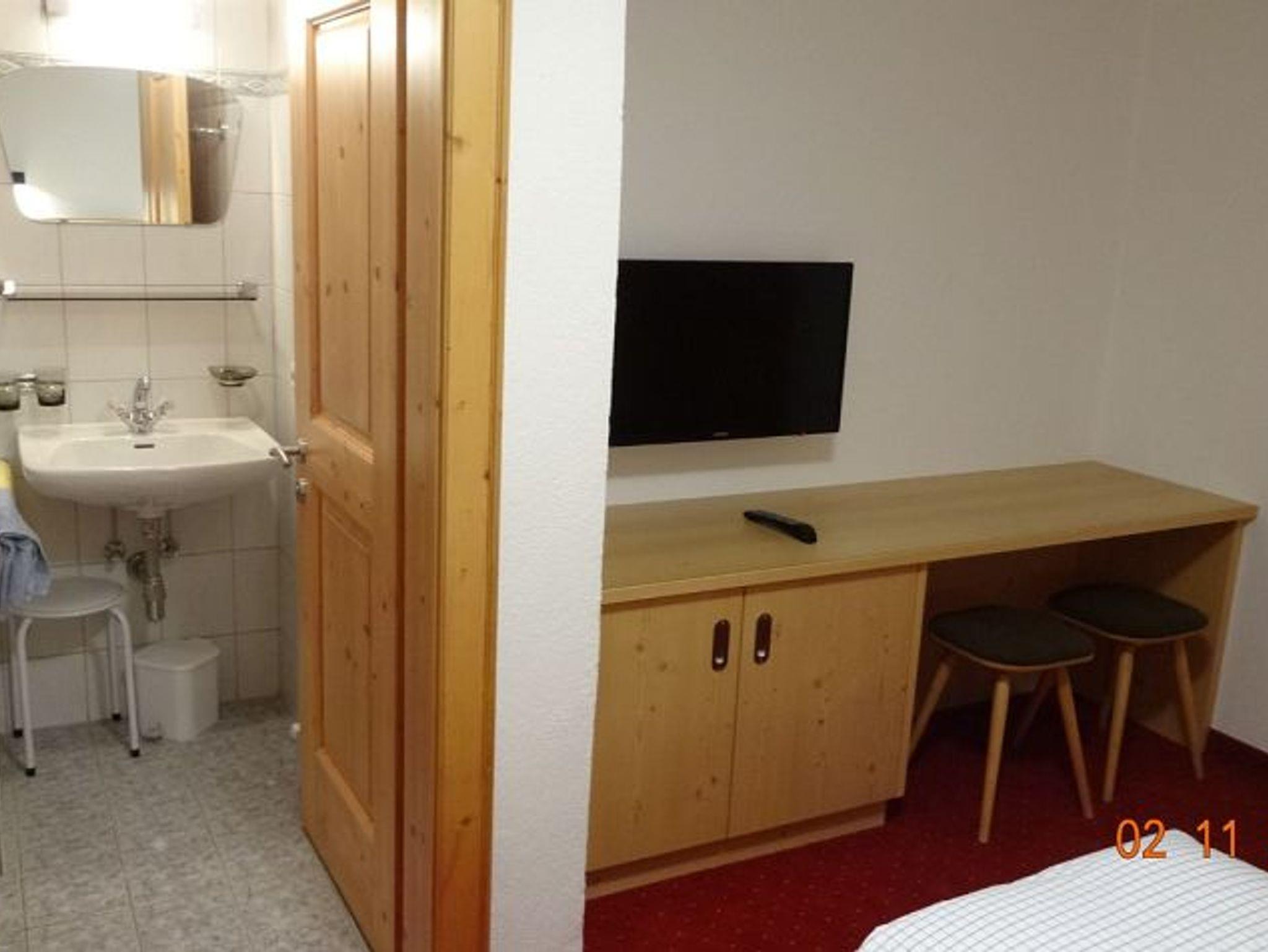 Das zugehörige Doppelzimmer (20 Quadratmeter) verfügt über ein bequemes Doppelbett, einen Fernseher, einen Schreibtisch, 2 Stühle und einen Spiegel.