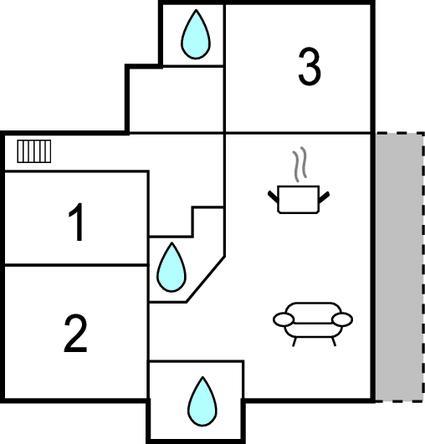 Badeværelse (nr. 3) - WC. Varmt og koldt vand. Bruser