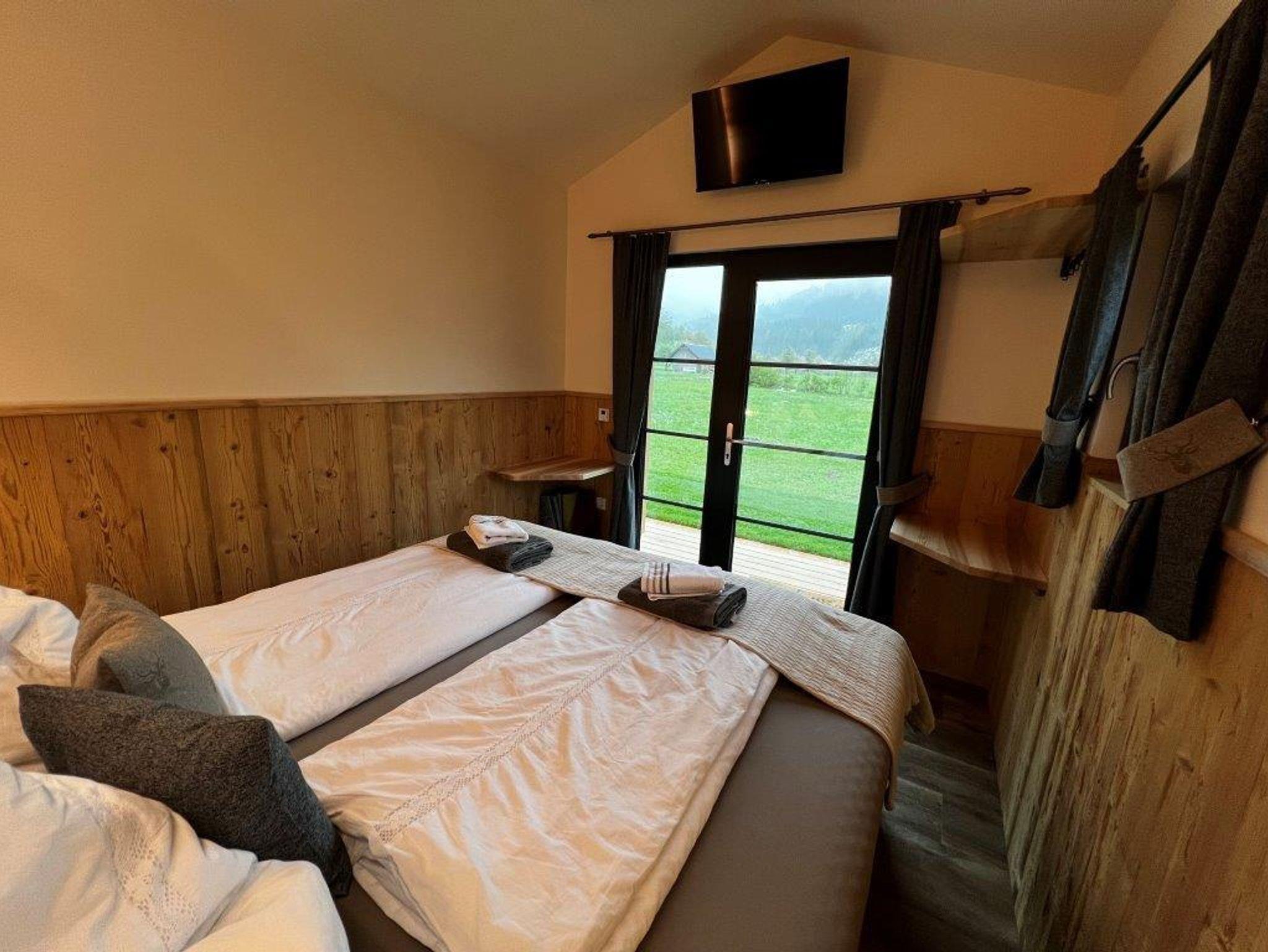 Unser Angebot umfasst eine gemütliche Schlafhütten mit Boxspring-Betten für maximalen nächtlichen Komfort, Infrarotheizung und Sat-TV. Bettwäsche und Handtücher werden selbstverständlich bereitgestellt. WC und Dusche befinden sich in einem separaten Gebäude und werden gemeinschaftlich genutzt.