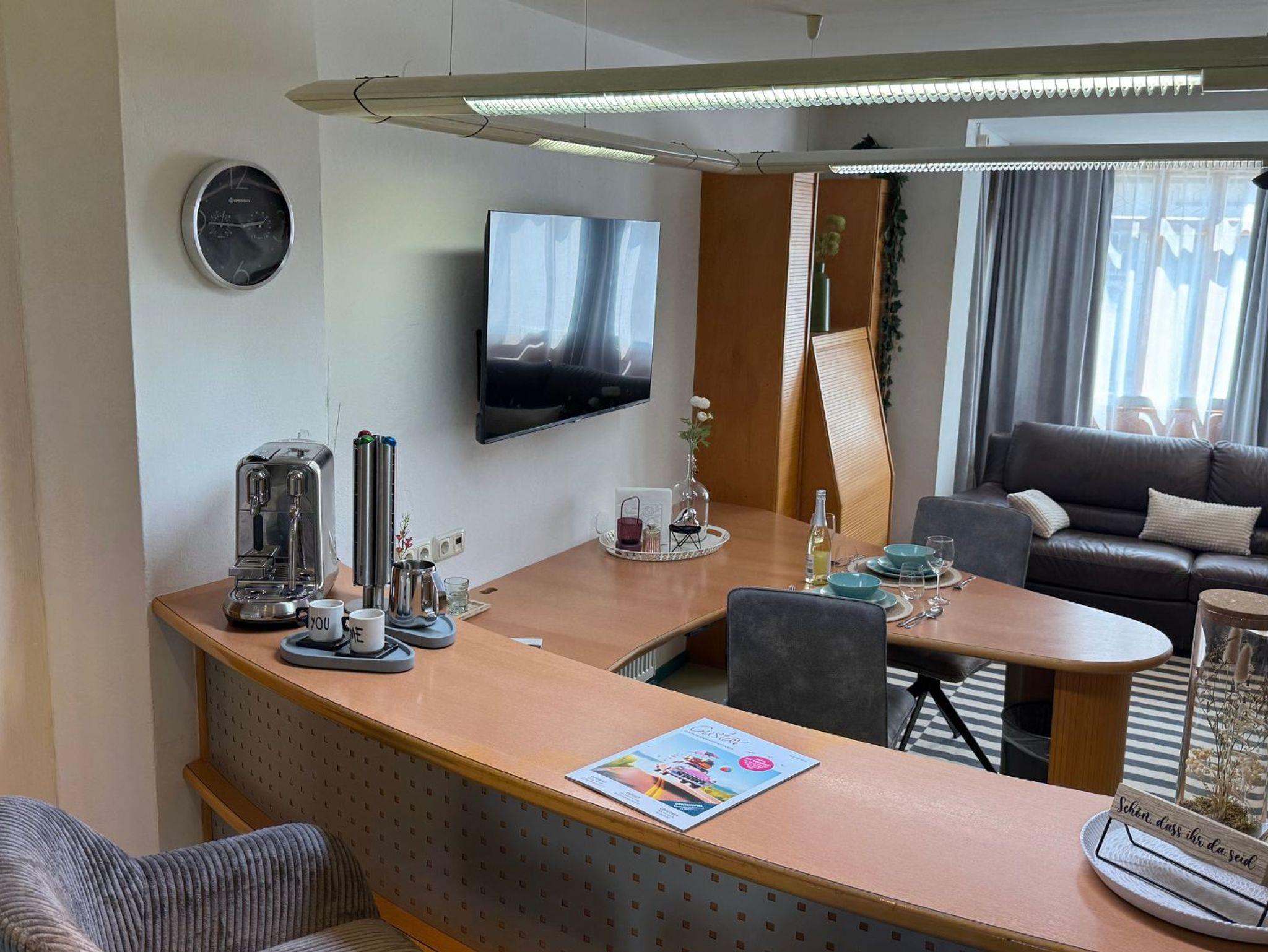 • Barbereich: Hier erwarten Sie zwei stylische Hocker und eine Sage Nespresso Kaffeemaschine. Kaffeekapseln sind vor Ort gegen Gebühr erhältlich, damit Sie Ihren Morgenkaffee in vollen Zügen genießen können.
