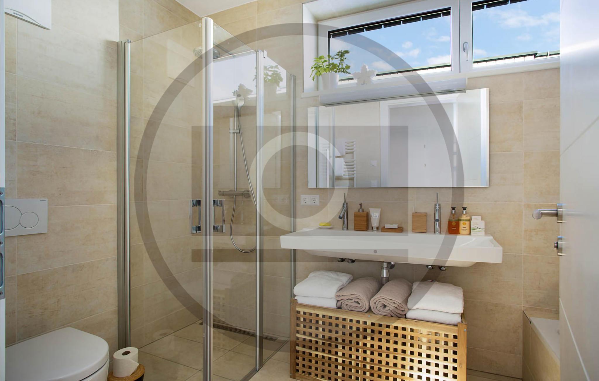 Badeværelse (nr. 1) - WC. Varmt og koldt vand. Bruser