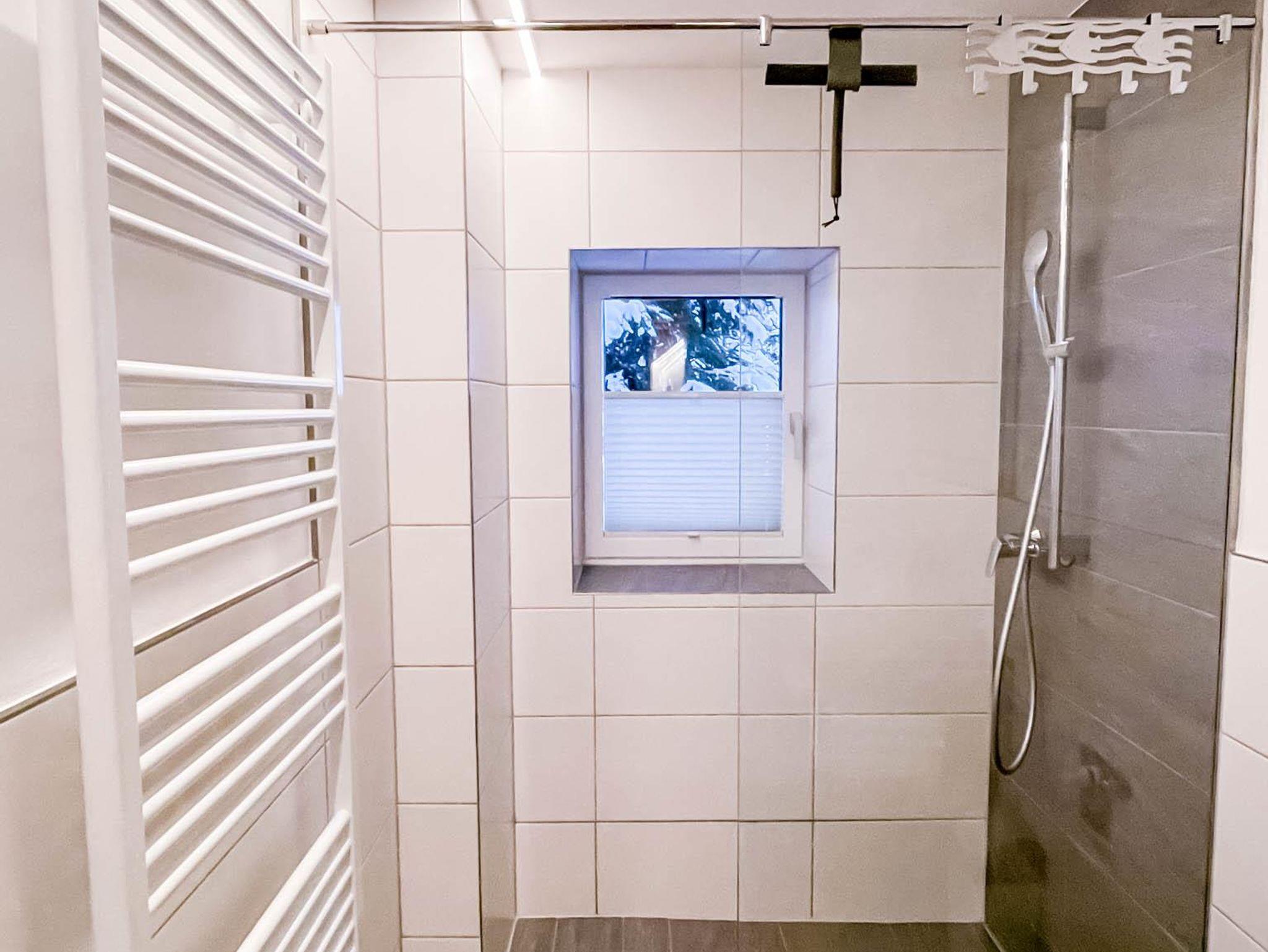 Die Wohnung verfügt über ein Badezimmer mit Dusche und Fön sowie ein separates WC.