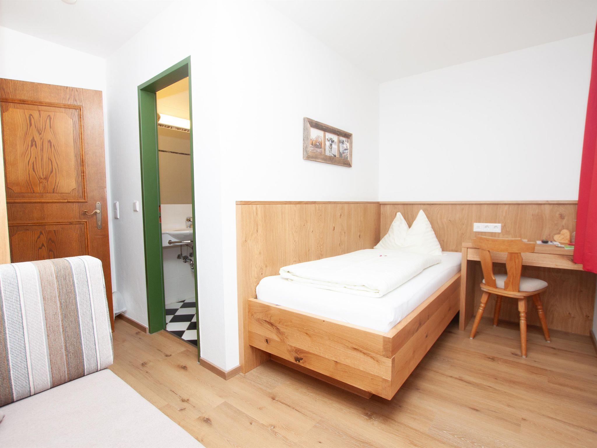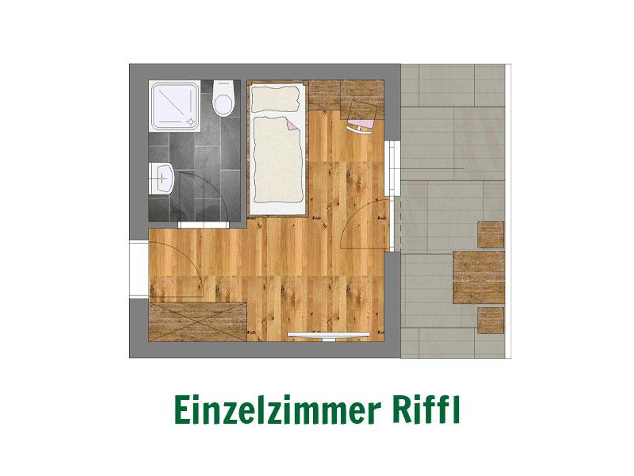 Die Riffl Einzelzimmer wurden 2025 renoviert. Das Zimmer hat einen Holzfußboden.