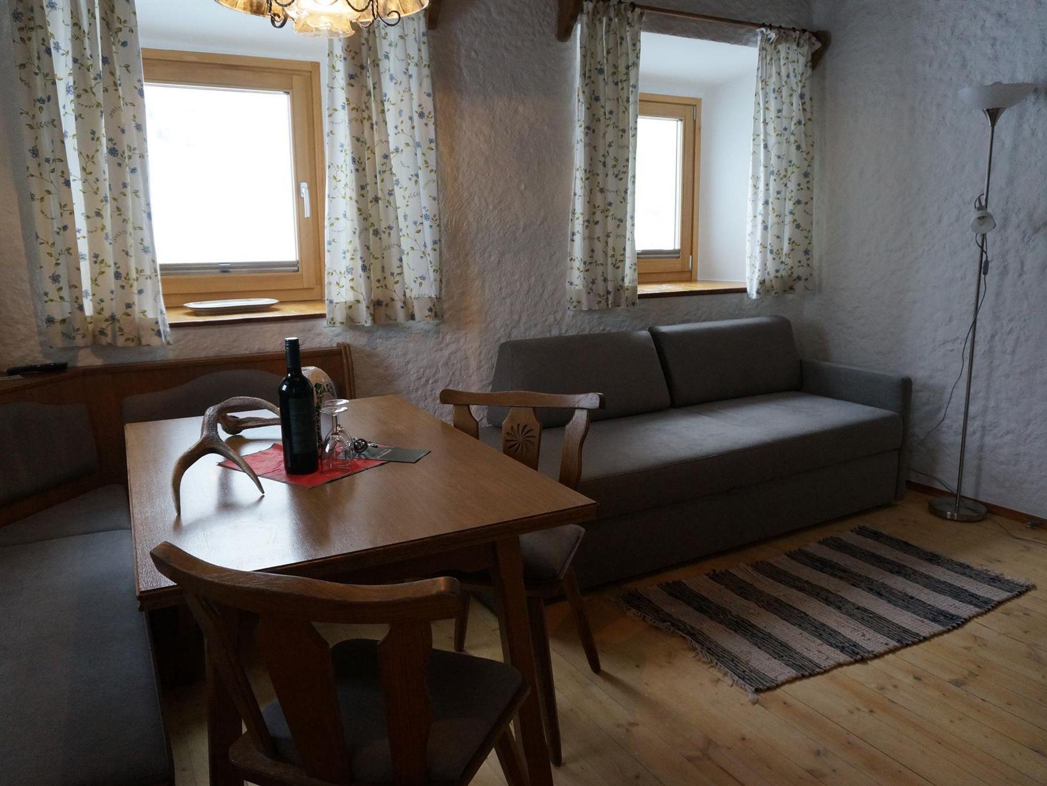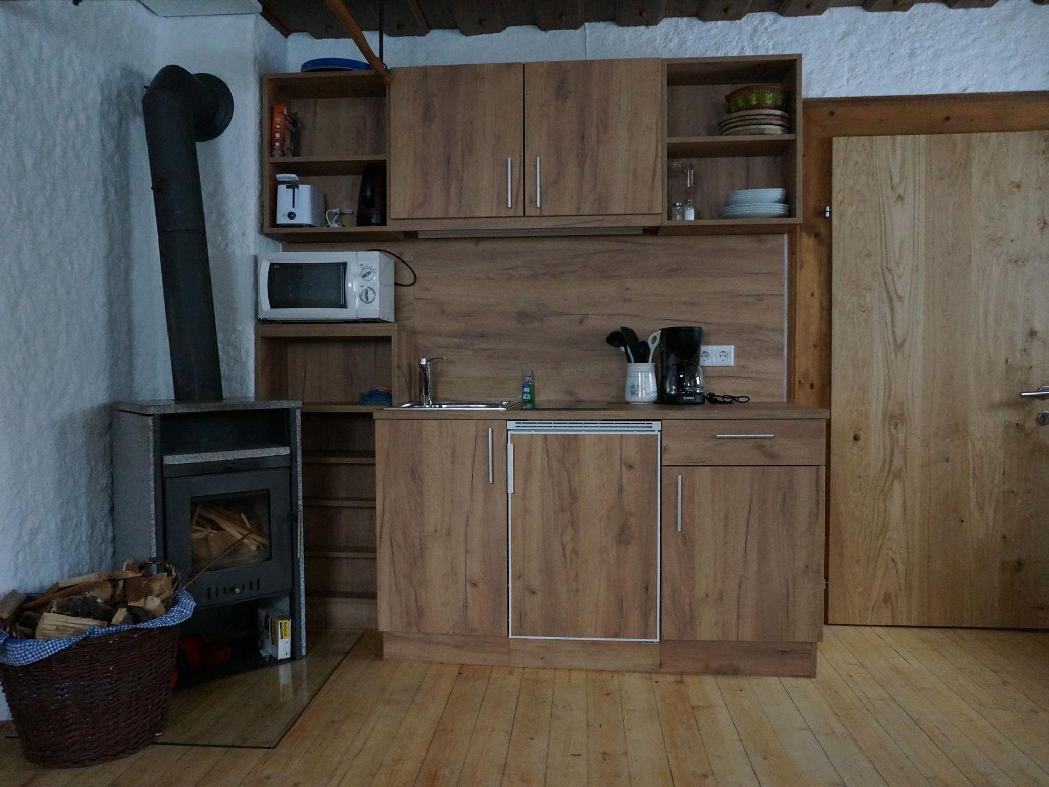 Enzian: Doppelzimmer, DU/WC, gemütlichen Wohnraum mit großem Schlafsofa für zwei Personen, Essecke, TV und Küchenzeile, extra Holzofen, Garten mit Sitzgelegenheiten.