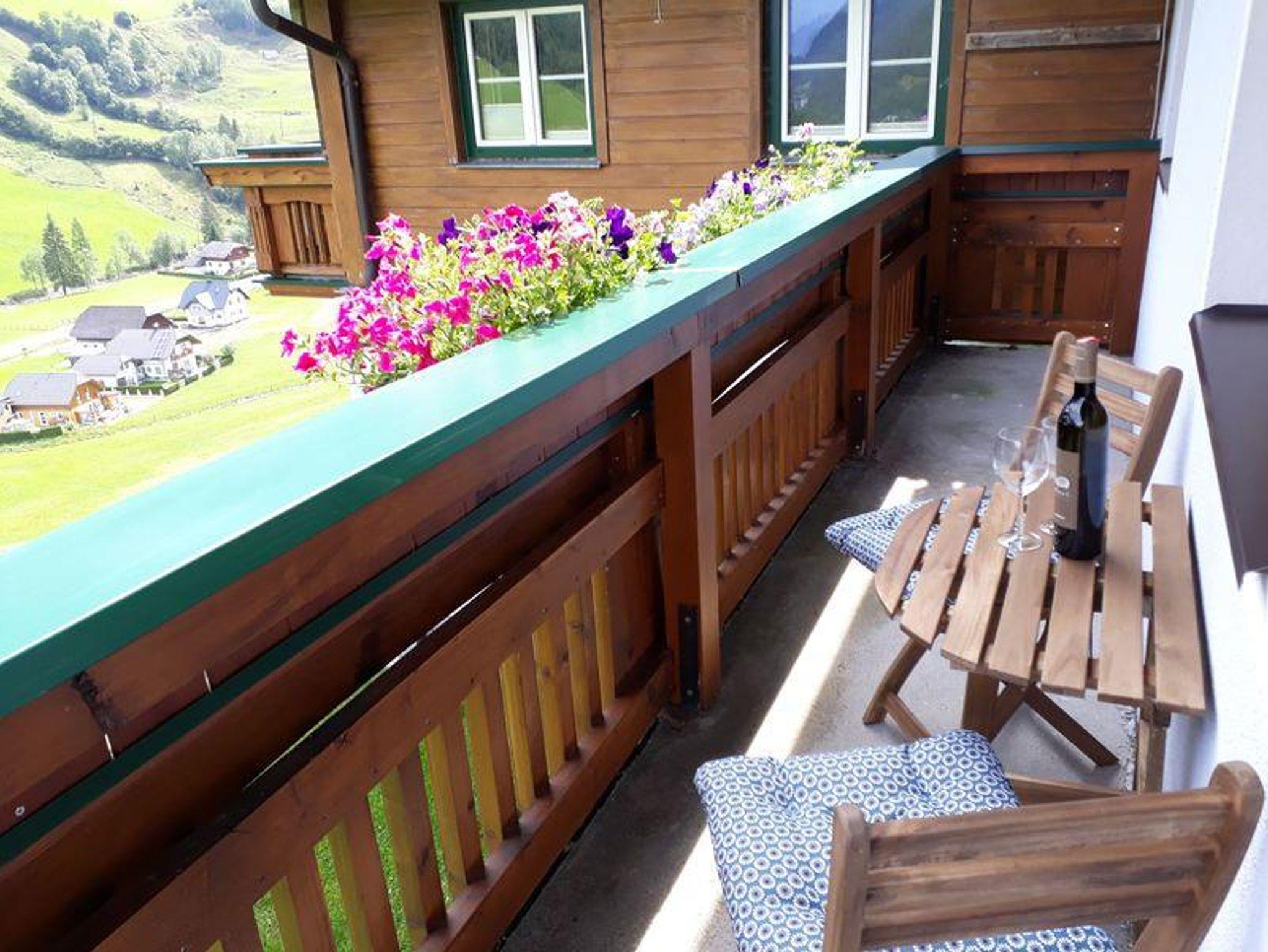 Helles, modern eingerichtetes Appartement im Zubau des Haupthauses mit wunderschönem Ausblick. Ein eigener Eingang führt in ein geräumiges Vorhaus, das mit Sölker Marmor ausgelegt ist. Über eine Treppe gelangen Sie in den ersten Stock, dort befindet sich die voll ausgestattete Küche mit einem großzügigen Wohn- und Essbereich, sowie ein Bad und ein separates WC. Die drei Schlafzimmer verteilen sich auf zwei Stockwerke. Ein weiteres Bad mit WC, Dusche und Badewanne befindet sich im 2. Stock. Alle drei Doppelzimmer verfügen über Sat-TV, W-LAN ist vorhanden. Ein eigener Balkon mit Sitzgelegenheit bietet einen herrlichen Ausblick ins Tal.