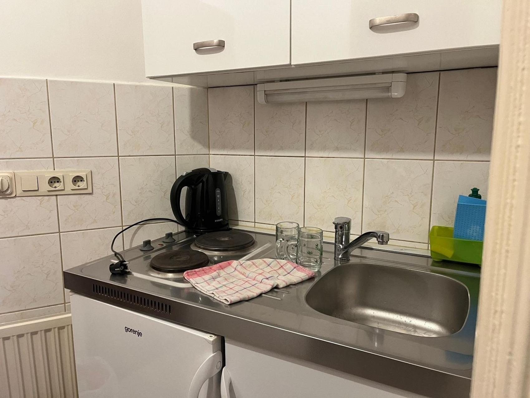Ihr Studio Nr. 102 im 1. Stock ist ausgestattet mit 2 Einzelbetten (welche zu einem großen Kingsizebett zusammengeschiben werden können) sowie eine bequeme Schlafcouch für die 3. Person, zusätzlich Essgruppe mit Tisch und 4 Stühlen, TV, WLAN, Duschbad/WC und kleiner Küche. Das Studio befindet sich auf der Staßenseite zur Mariazellerstraße. Die schalldichten Fenster sorgen für eine angenehme Nachtruhe.