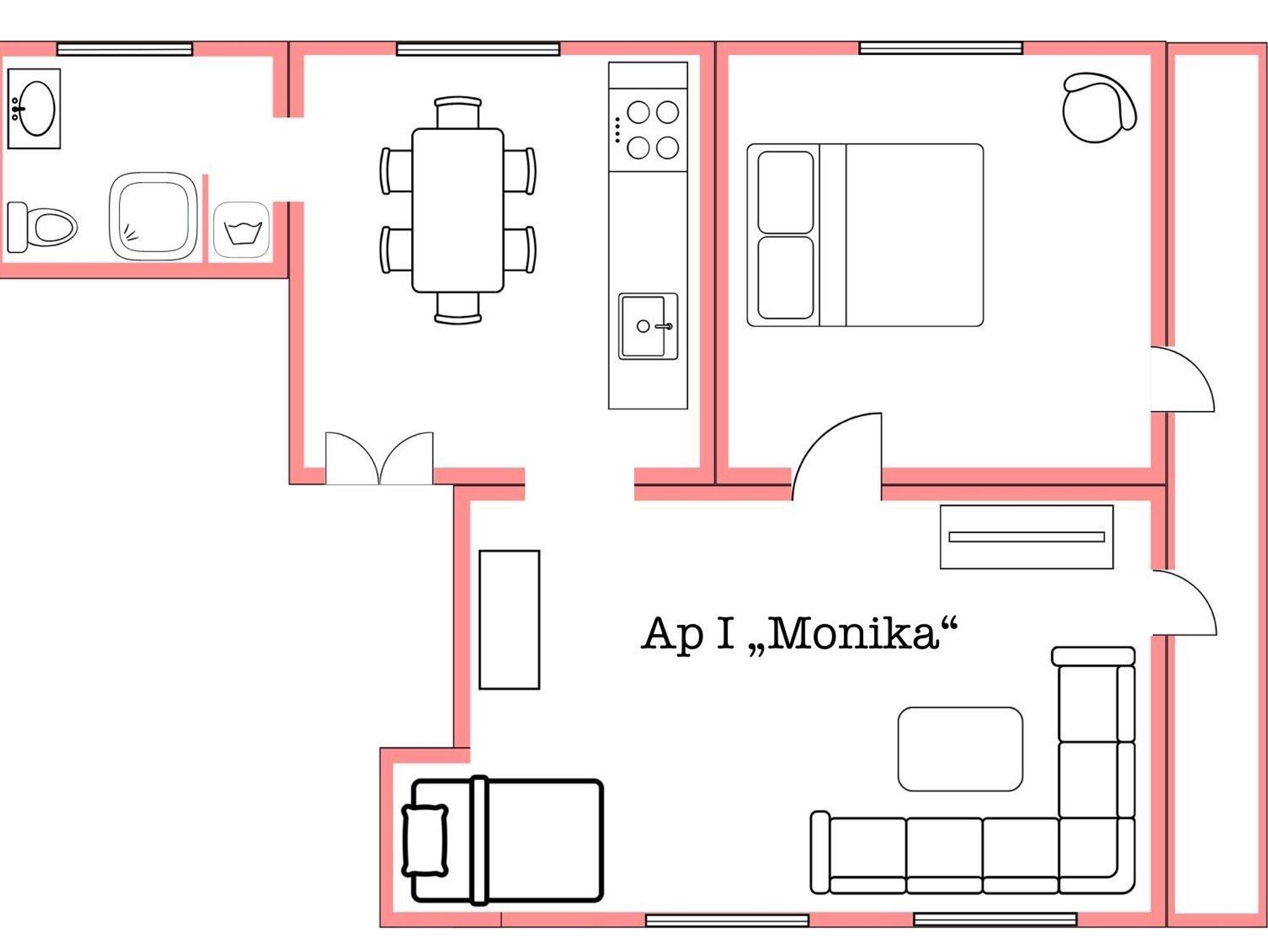 Im Apartmet I Monika, befindet sich ein Stockbett, eine ausziehbare Couch sowie ein Balkon und im Apartment II Madeleine, eine ausziehbare Couch und bieten jeweils Platz für mind. 4 Personen.