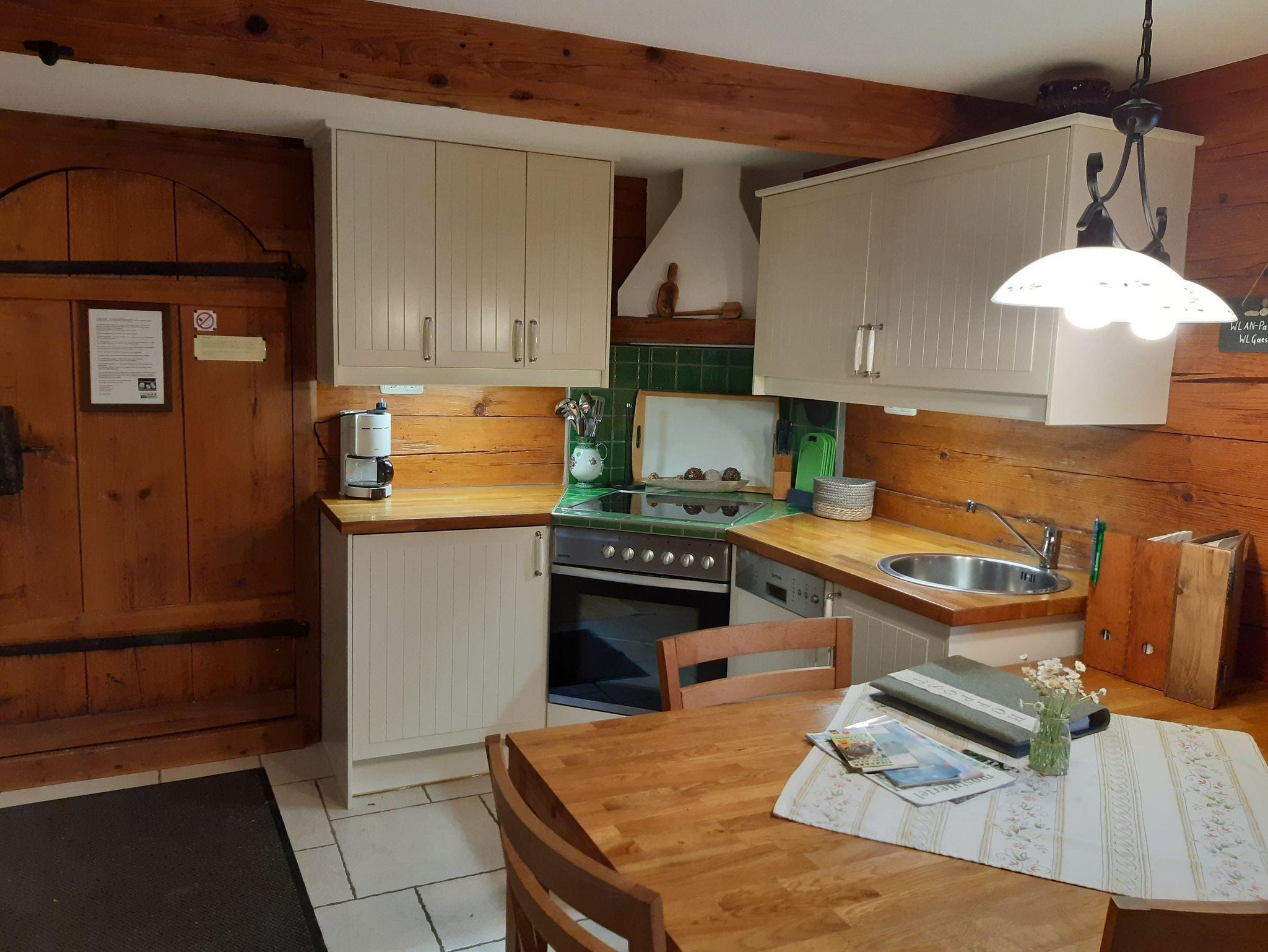 Wohlfühlen und Wohnen auf 65m² für 1 bis 4 Personen am **** Nussbaumerhof ++++++ im Untergeschoss Vorraum mit Garderobenschrank - vollausgestattete Küche mit E-Herd, Backrohr, Kühlschrank mit Gefrierfach, Filterkaffeemaschine oder Cremesso Kapselkaffeemaschine, Teekocher, Geschirrspüler, Toaster, Mixer, Eierkocher, Geschirr, Küchenpaket (mit Spülmittel, Geschirrspültabs, Küchenrolle Kaffeefilter, Spültuch, Schwamm und Geschirrtücher) - Teebar - offener Wohn-Küche-Essbereich - familiärer großer Esstisch - 1 Zusatzbett möglich (komfortables Sofabett im Wohnbereich) - behaglicher Kaminofen zum selber Heizen inklusive Brennholz -Zentralheizung in der kalten Jahreszeit - Flachbildschirm - Radio - kostenloses W-LAN - Badezimmer mit Dusche, Waschbecken und Föhn - Hand- und Duschtücher sind Teil der Ausstattung ++++++ Im Obergeschoss 1 Doppelbett - 1 Zusatzbett möglich (komfortables ausziehbares Schlafsofa) - Bettwäsche ist Teil der Ausstattung - Flachbildschirm - gemütlicher überdachter Balkon - Gitterbett auf Anfrage gratis - ++++++ Im Außenbereich schöner eingezäunter Garten mit vielen Blumen und Sträuchern - heimelige Terrasse zum Sitzen und Entschleunigen - Grillmöglichkeit am Griller und beim gemütlichen Lagerfeuer - Parkplatz neben dem Hof - Haustiere sind gegen einen Aufpreis herzlich Willkommen.