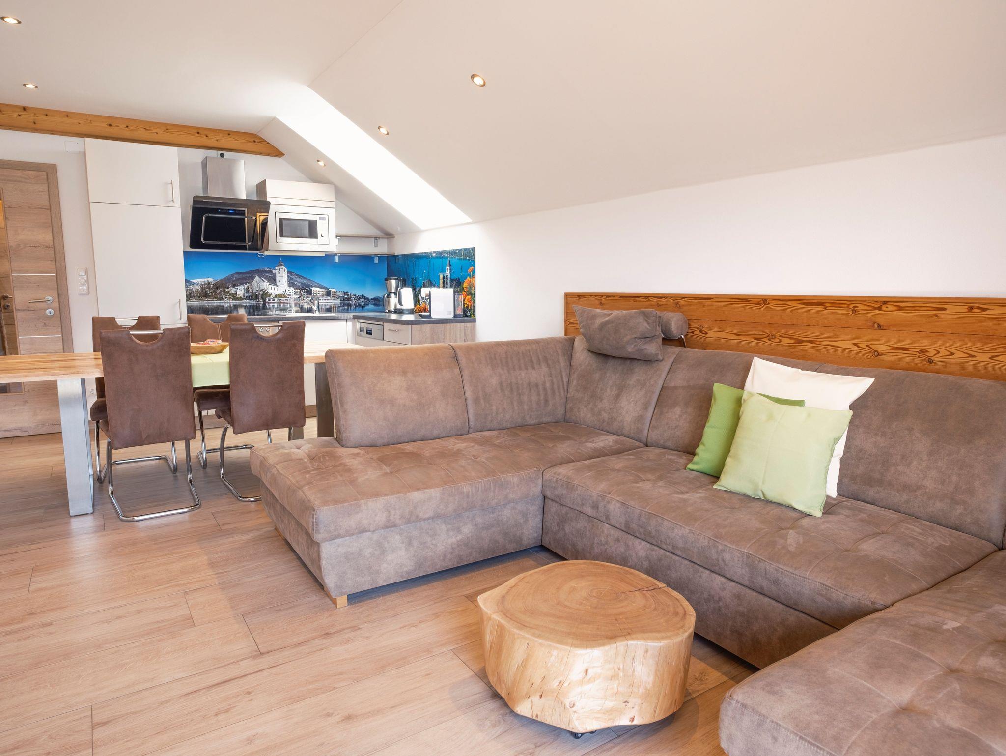 Das Chalet befindet sich im obersten Stockwerk des Gästehauses und wurde mit Altholz-Elementen gestaltet ? eine Mischung aus Tradition und Moderne. Zwei geräumige Schlafzimmer mit Boxspringbetten und ein begehbarer Kleiderschrank erwarten Sie. Das exklusive Badezimmer wurde mit Walk-In-Dusche, Touch-Radio und separatem WC eingerichtet. Im Chalet „Wolfgangsee“ finden Sie außerdem eine komplett eingerichtete Küche inklusive Geschirrspüler, ein Wohnzimmer mit Wohnlandschaft, eine Sitzecke, einen Elektrokamin und zwei HD-Flachbildferseher vor.