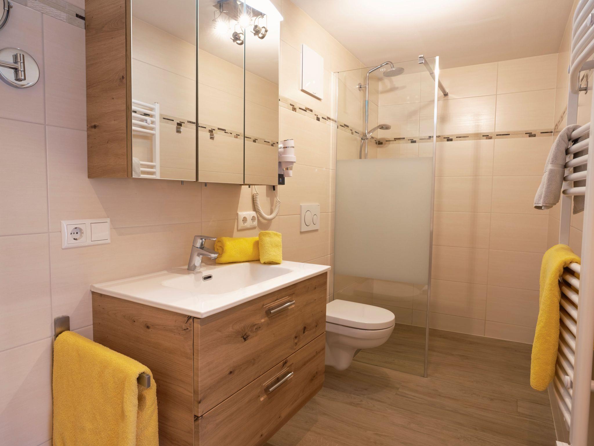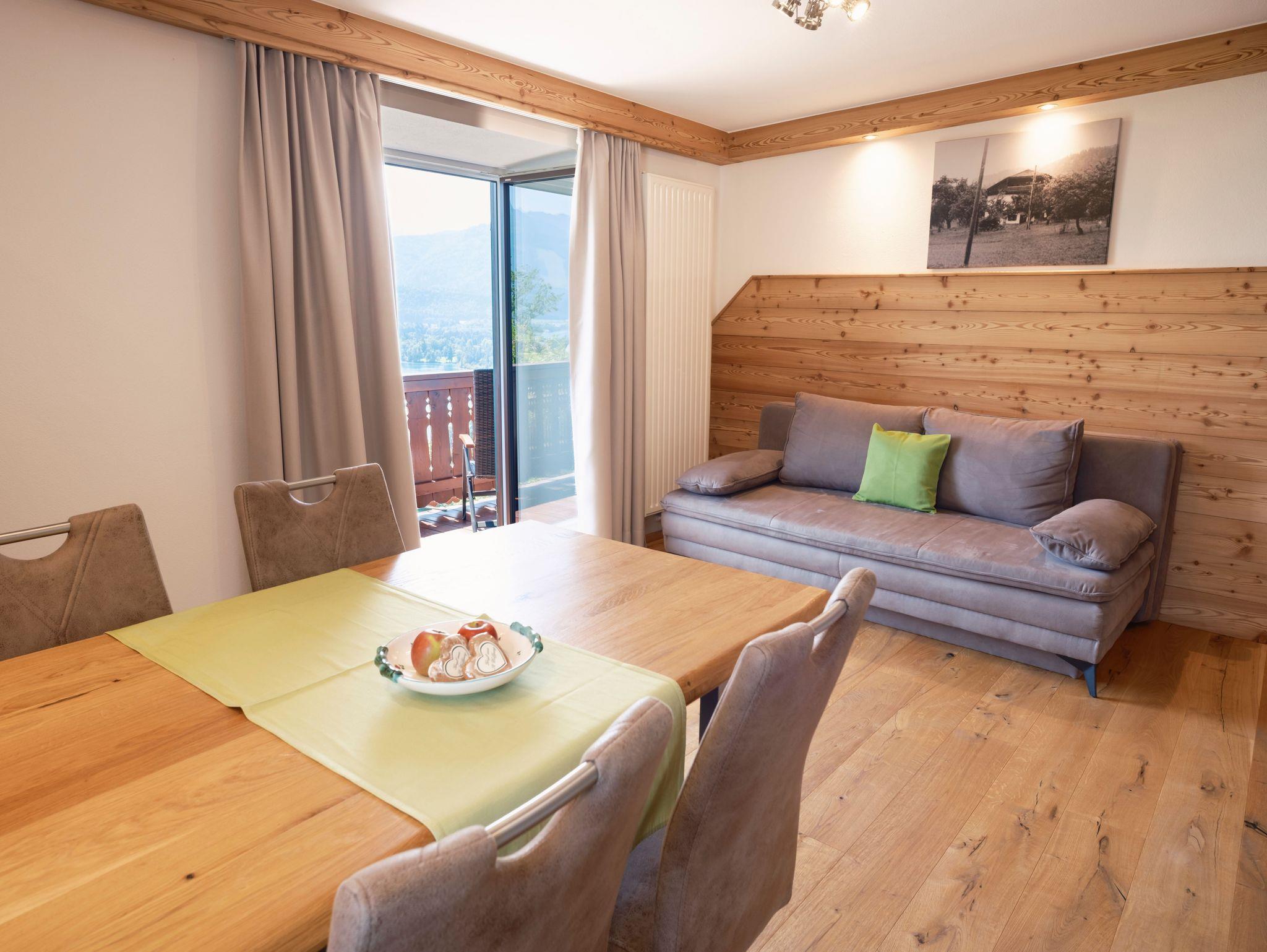 Das Apartment befindet sich im ersten Stockwerk des Stammhauses und wurde mit Altholz-Elementen gestaltet – eine Mischung aus Tradition und Moderne. Das exklusive Badezimmer wurde mit Walk-In-Dusche, WC und Touch-Radio eingerichtet. Im Apartment „Sparber“ finden Sie außerdem eine komplett eingerichtete Küche inklusive Geschirrspüler, eine Couch, eine Sitzecke, einen Elektrokamin und HD-Flachbildferseher vor. Nächtigen werden Sie im gemütlichen Boxspringbett, von dem aus Sie das Treiben am See beobachten können.