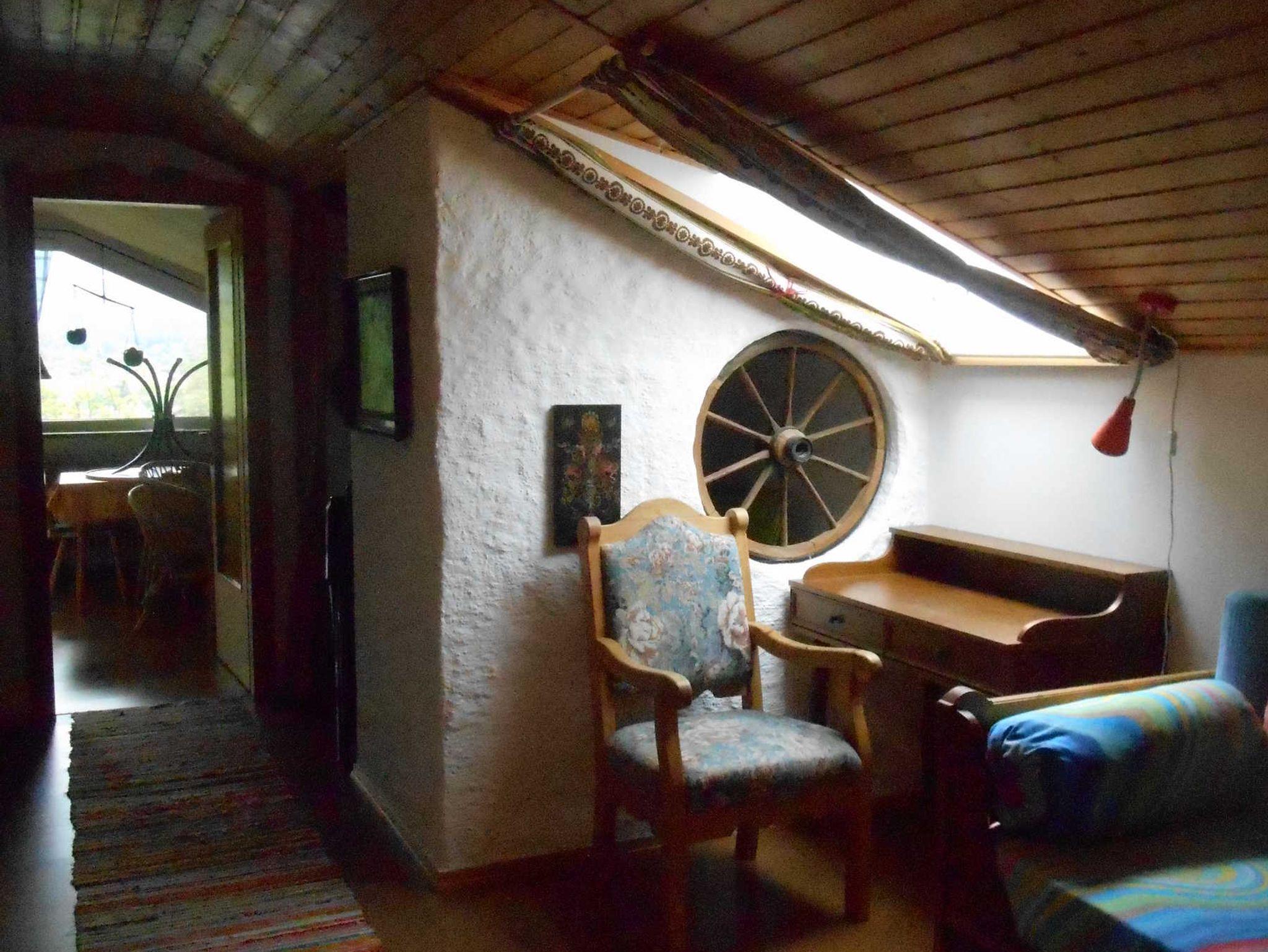 - zweiter Wohnraum mit Lesesofa und Couchtisch und Schreibtisch unterm Dachfenster