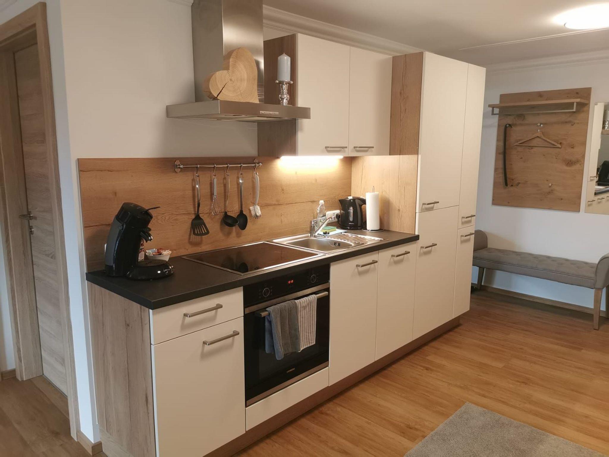 sowie einer voll ausgestatteten Küchenzeile mit Ceran-Herd,