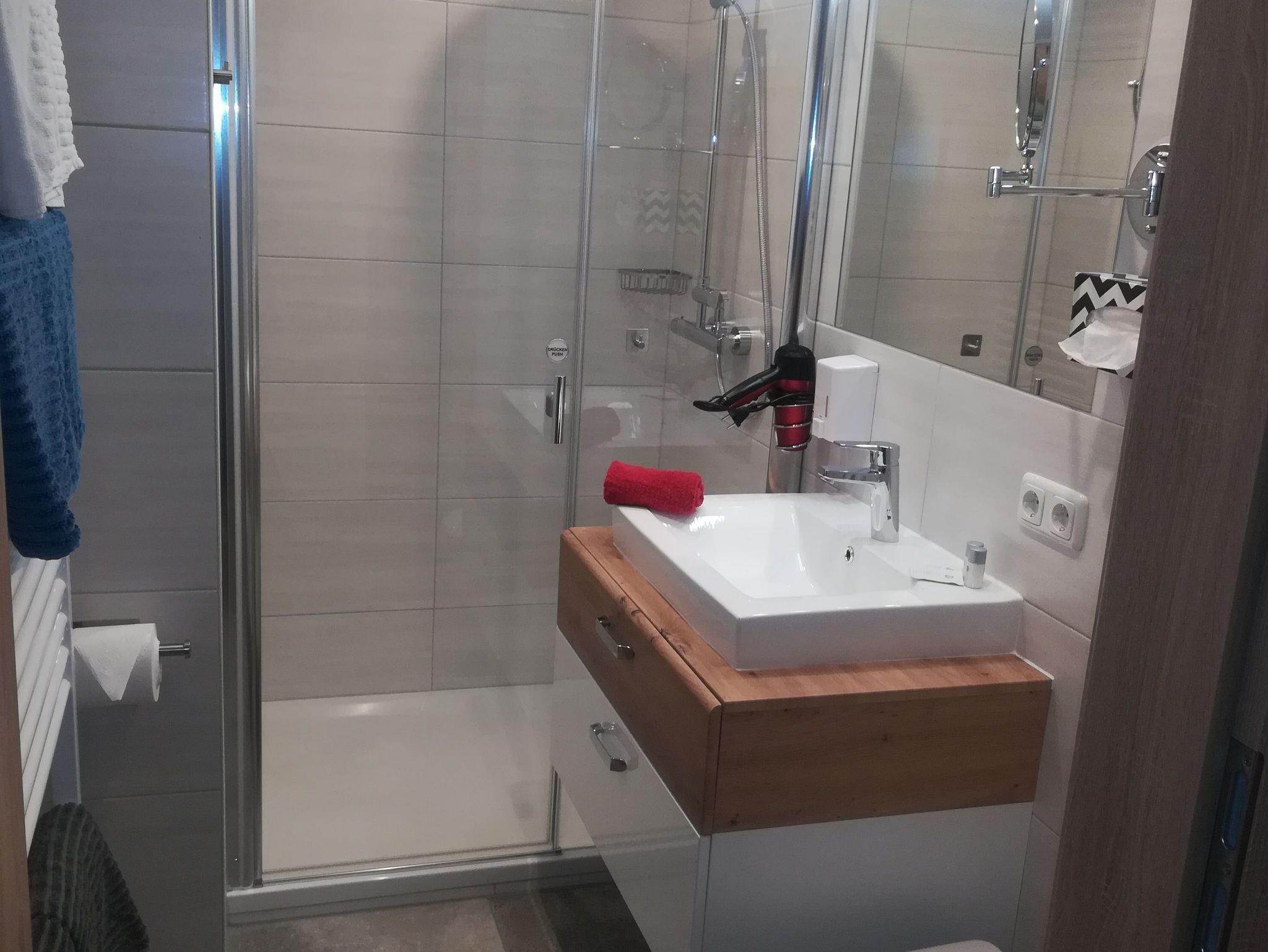 und WC, Kosmetikspiegel und Föhn; Flachbild-TV (108cm), separates 2. WC, Bügeleisen,