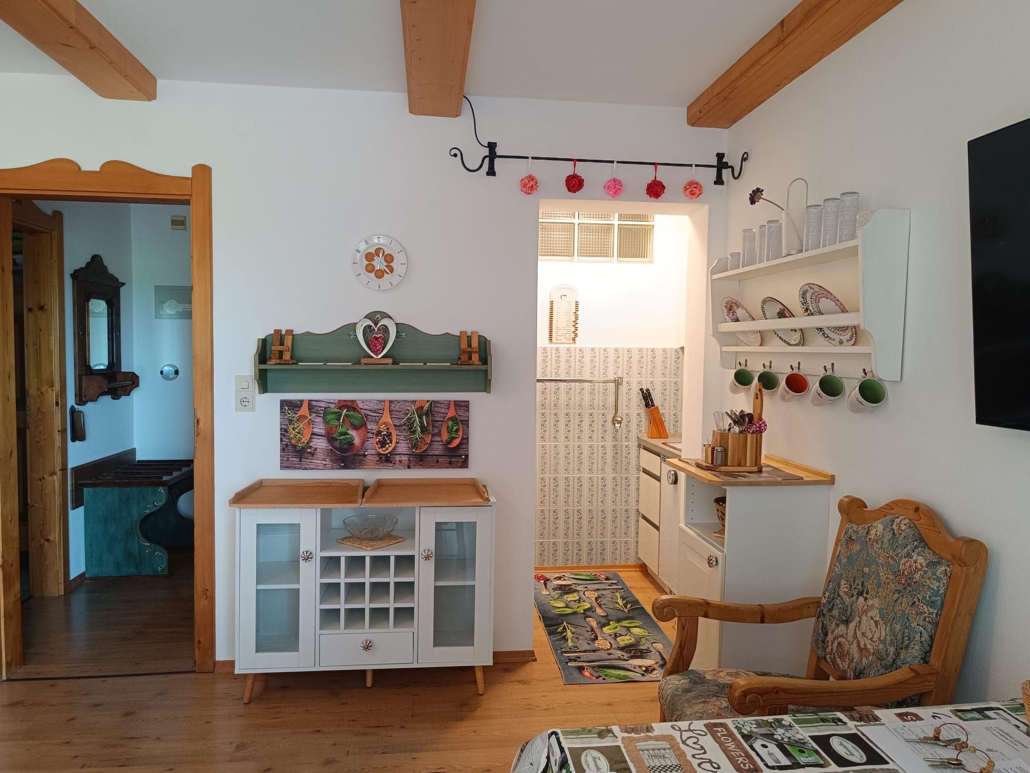 - überkomplett ausgestatteter Küchennische (Ceranfelder, Kühlschrank, Toaster, Wasserkocher, Kaffeemaschine, Pizzaofen, ... Gläser, Geschirr, Besteck, ....Küchenwäsche inklusive)