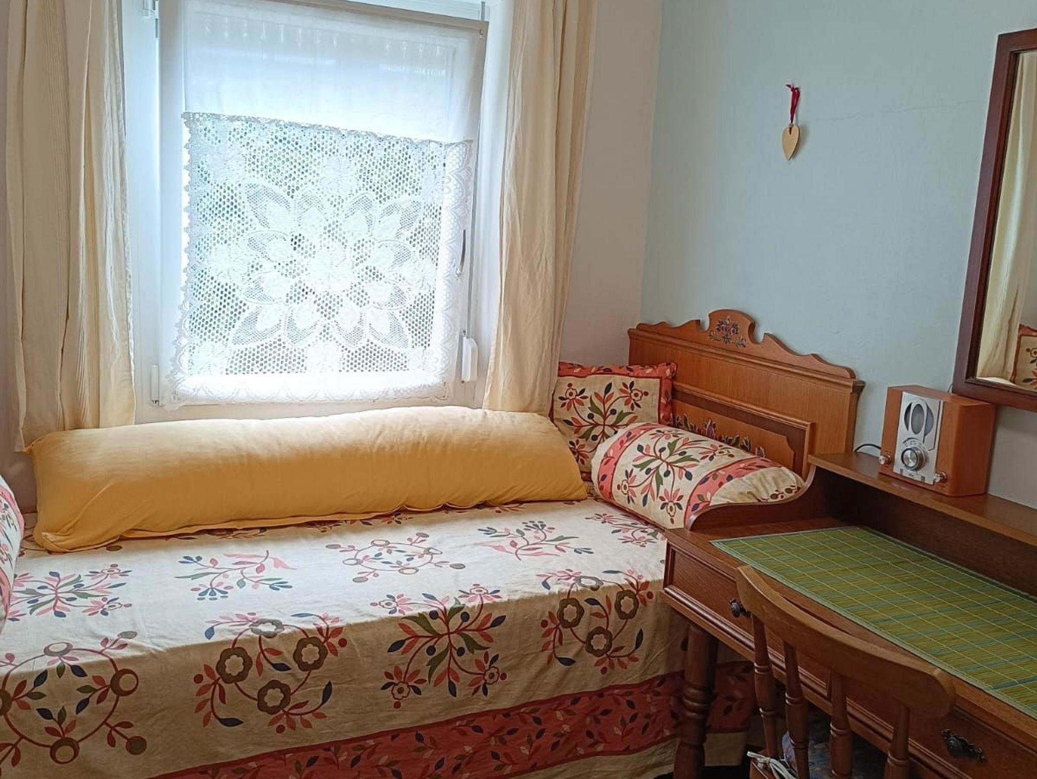 1x Bett in Erwachsenenlänge im Kinderzimmer mit Schreibtisch und Kasten