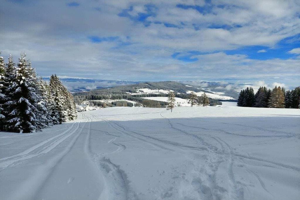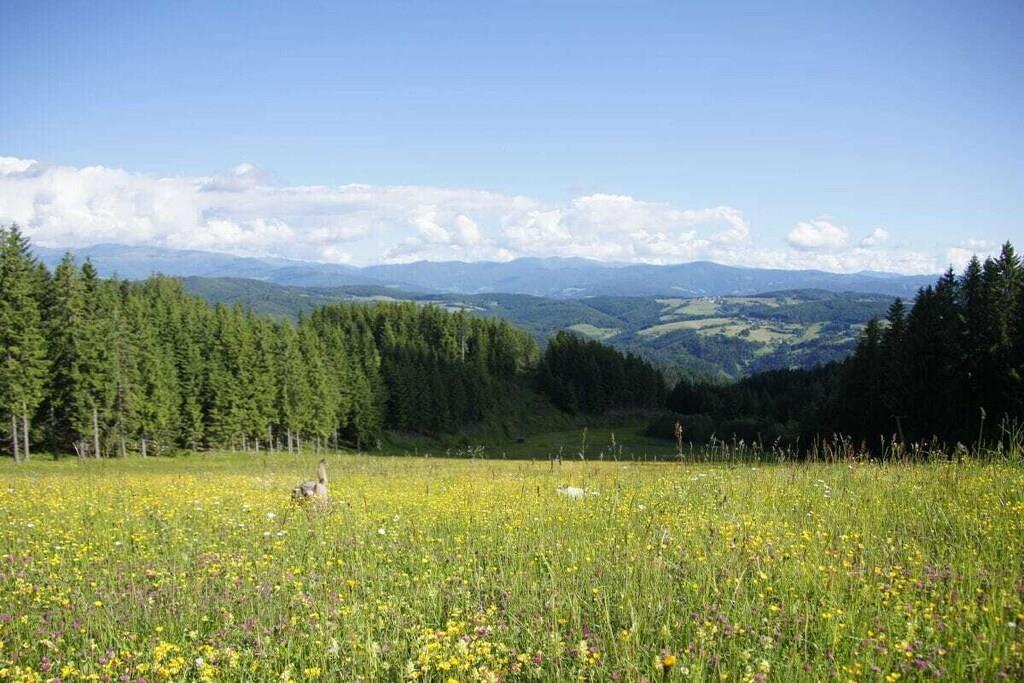 Bjergferie: Vandreture, skiløb, svømning, motion, wellness, afslapning og meget mere i et malerisk landskab, ren natur! Slap af i saunaen for at forbedre dit velvære, eller fordyb dig i det behagelige vand i den panoramiske indendørs pool. Ferieboligen ligger 1.200 meter over havets overflade, omgivet af frodige skove og på en solrig bjergskråning med en fantastisk panoramaudsigt over de omkringliggende bjergkæder. Nyd de lækre regionale delikatesser, og afslut dagen med et godt glas vin på balkonen, mens du soler dig i den nedgående solskær og skyggerne fra de omkringliggende bjerge.
