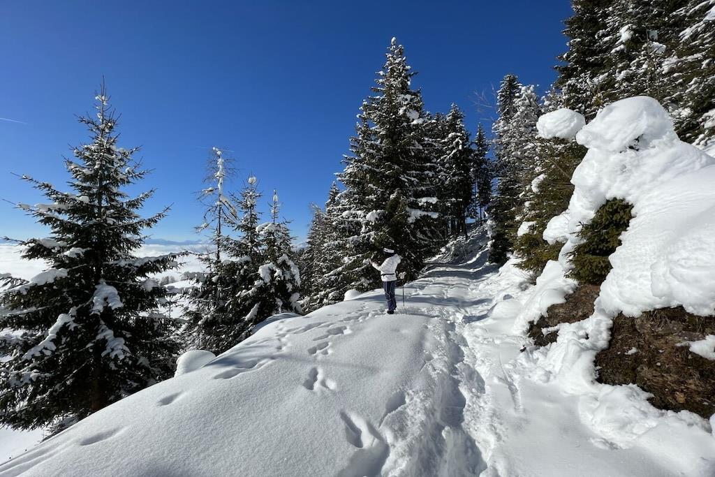 Bjergferie: vandreture, skiløb, svømning, motion, wellness, afslapning og meget mere, alt sammen i et malerisk landskab, ren natur! Slap af i saunaen for at forbedre dit velvære, eller fordyb dig i det behagelige vand i den panoramiske indendørs pool. Ferieboligen ligger 1200 meter over havets overflade, omgivet af frodige skove og på en solrig bjergskråning med en fantastisk panoramaudsigt over de omkringliggende bjergkæder. Nyd de lækre regionale delikatesser, og afslut dagen med et godt glas vin på balkonen, mens du soler dig i den nedgående solskær og skyggerne fra de omkringliggende bjerge.