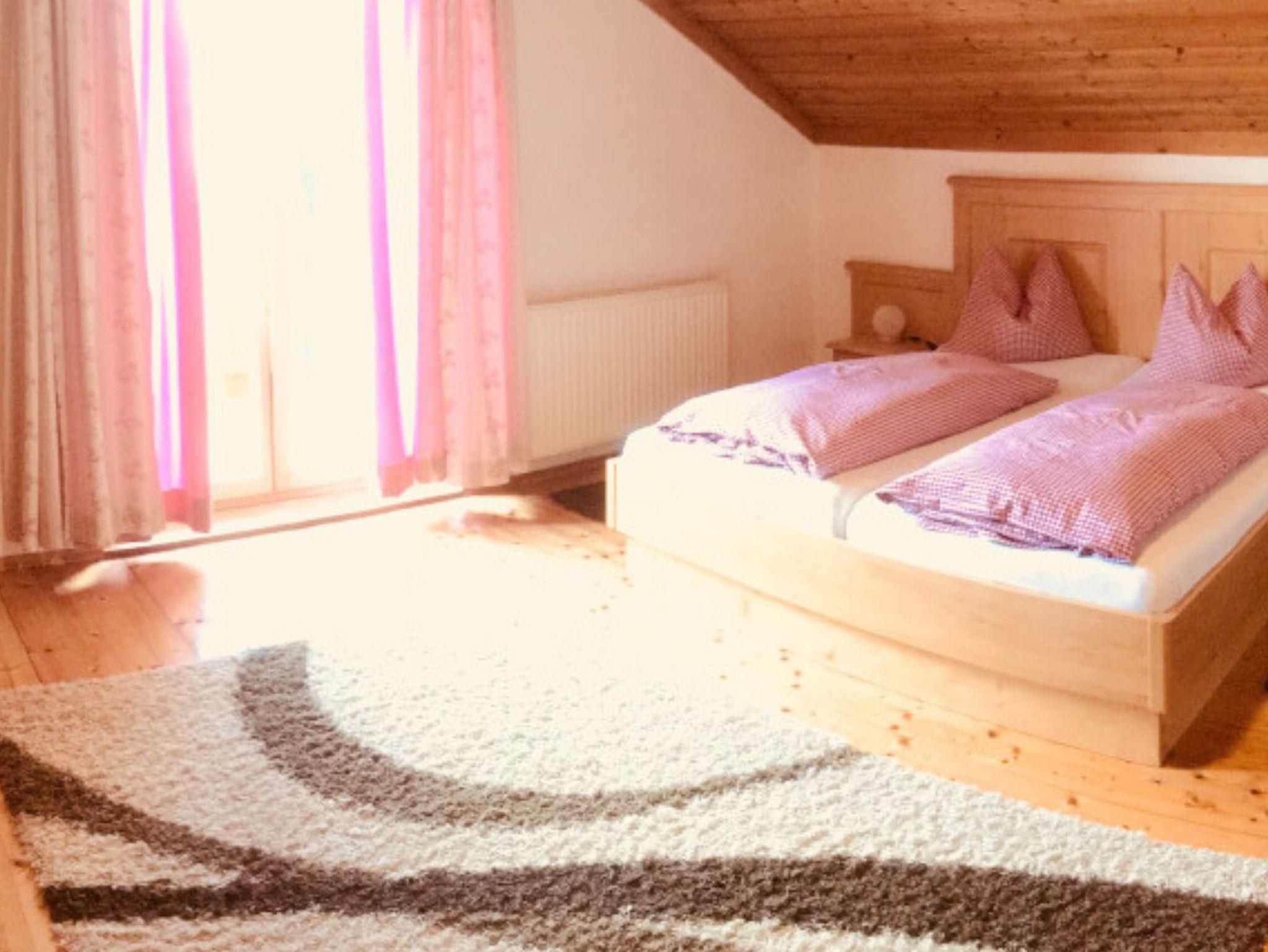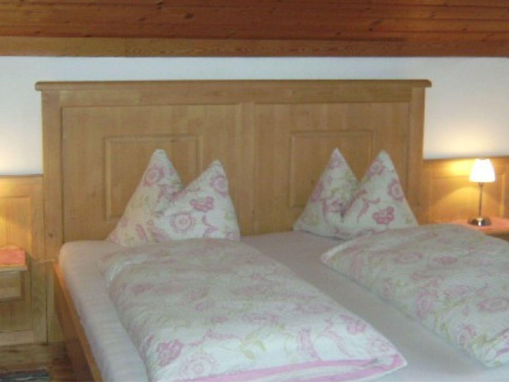 Geräumige Ferienwohnung im Dachgeschoss mit Schlafzimmer, Küche, Vorraum, Badezimmer und Balkon. Neben dem Doppelbett und dem Einzelbett gibt es bei Bedarf noch ein Reisegitterbett.