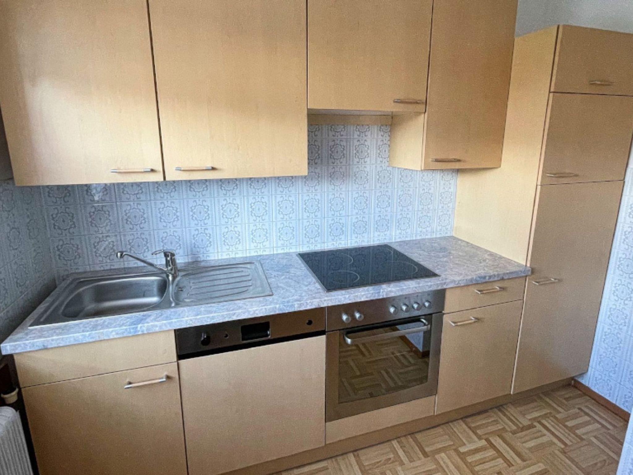 Ferienwohnung für 2 Erwachsene und ein Kind mit Schlafzimmer, Ausziehcouch, Bad und Wohnküche. Vom Balkon traumhafter Blick über Berge und Attersee.