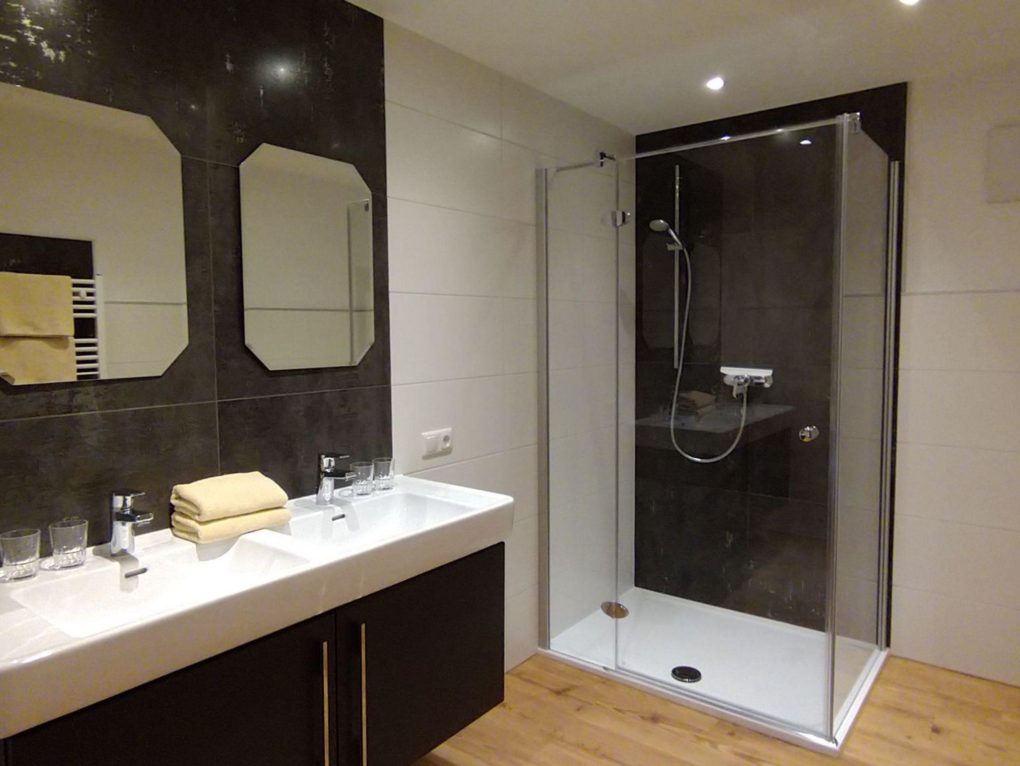 • Badezimmer mit Dusche und WC und Haartrockner