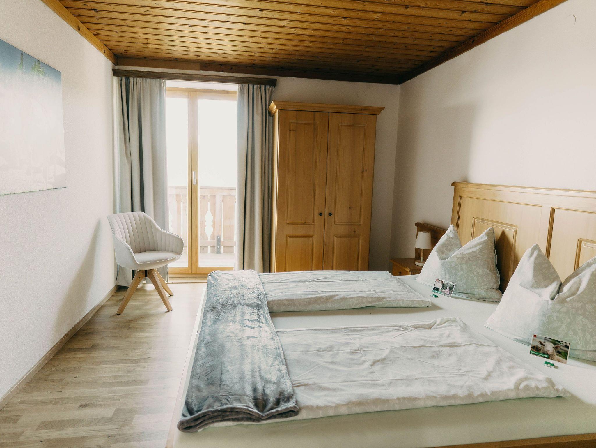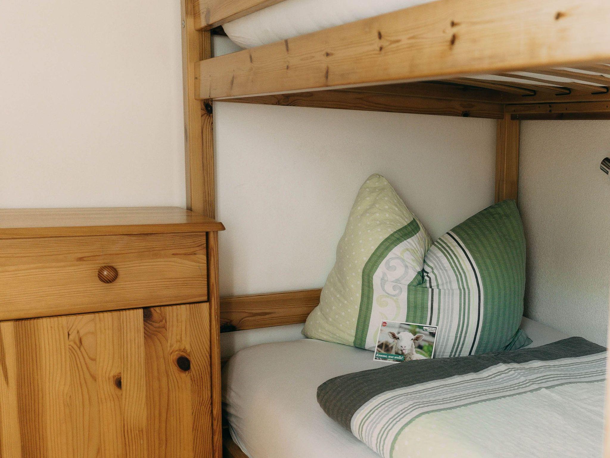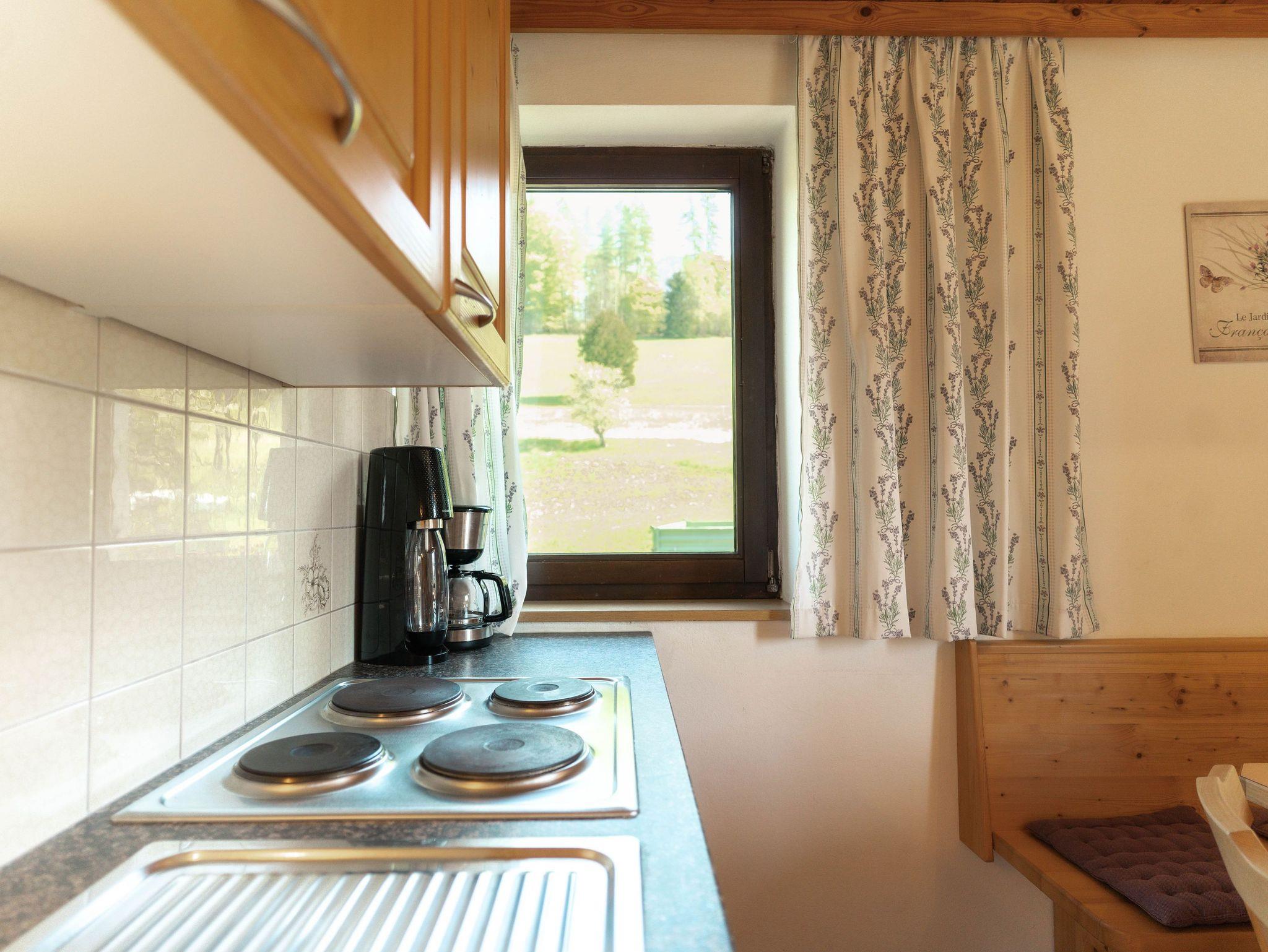 Schöne Ferienwohnung im Nebenhaus mit Balkon und Blick auf Berge, Wald und See. Bestehend aus zwei Schlafzimmern mit Doppel- bzw. Etagenbett, Küche, Vorraum und Badezimmer.