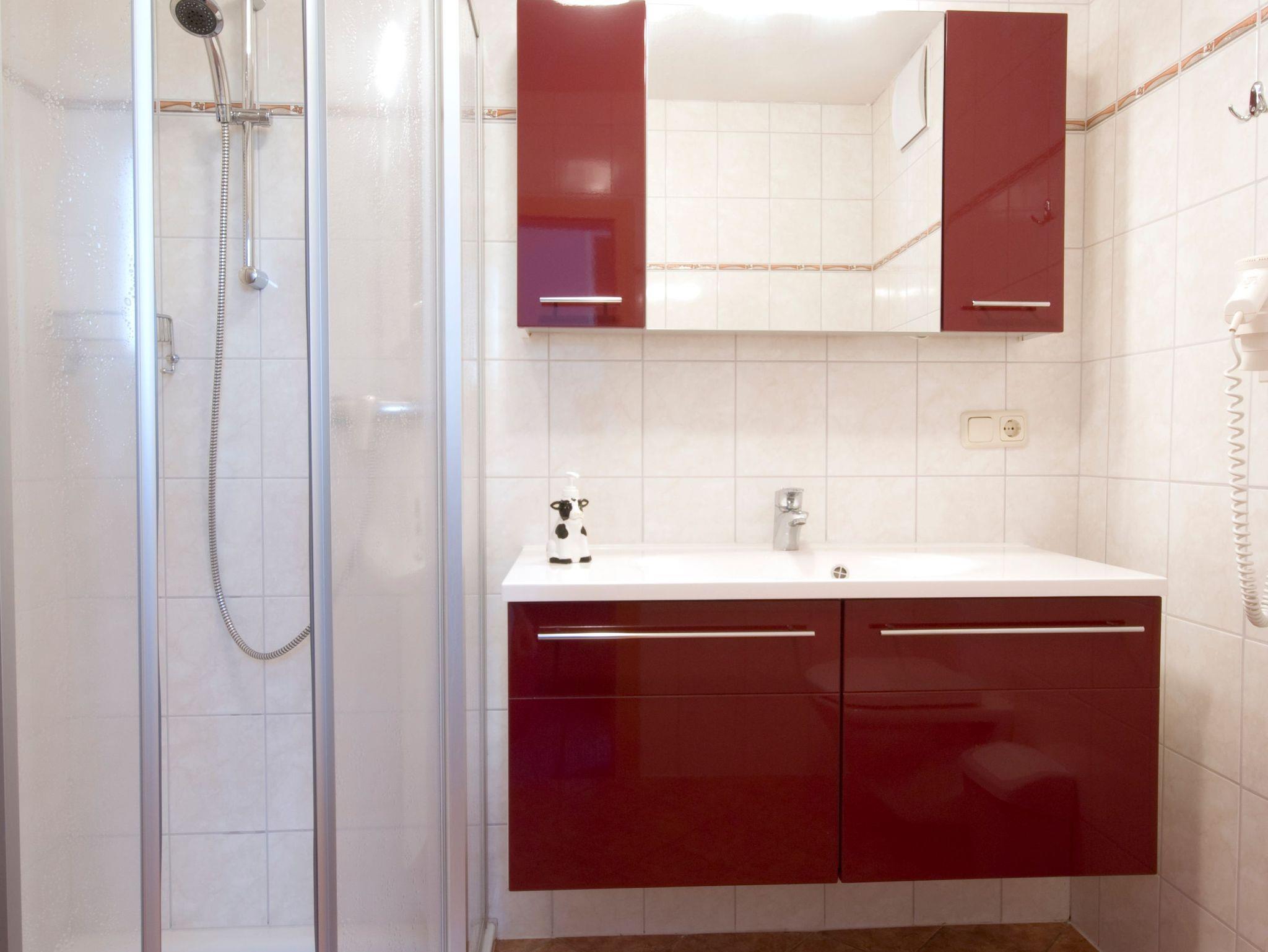 • Badezimmer mit Dusche und WC und Haartrockner