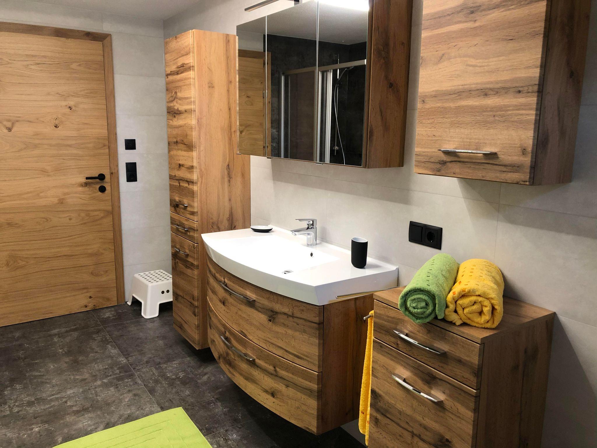 Das moderne und freundliche Apartment bietet auf 70m² Platz für bis zu 6 Personen. Die Sonnenterrasse verfügt über Sitzgelegenheiten, einem Tisch, einem Grill sowie Liegestühle mit Decken für entspannte Tage. Im Eingangsbereich befindet sich ein Vorraum mit Garderobe. Im großen Wohnraum mit Fensterfront und Terrassentür lässt sich die Aussicht wunderbar genießen. Darin findet sich die gemütliche Doppel-Schlafcouch, eine vollausgestattete Küche und der ausziehbare Esstisch mit Eckbank. Durch die Fernsehwand ergibt sich eine perfekte Raumaufteilung. Das Wi-Fi, Spiele und diverse Bücher dürfen natürlich auch nicht fehlen. Durch den Flur gelangt man zu den zwei seperaten Schlafzimmern welche für jeweils 2 Personen ausgestattet sind (Doppelbett und Französisches Bett), sowie zum Badezimmer mit Dusche und WC. Es gibt auch eine Einstellmöglichkeit für Fahrräder und Ski/Snowboards.