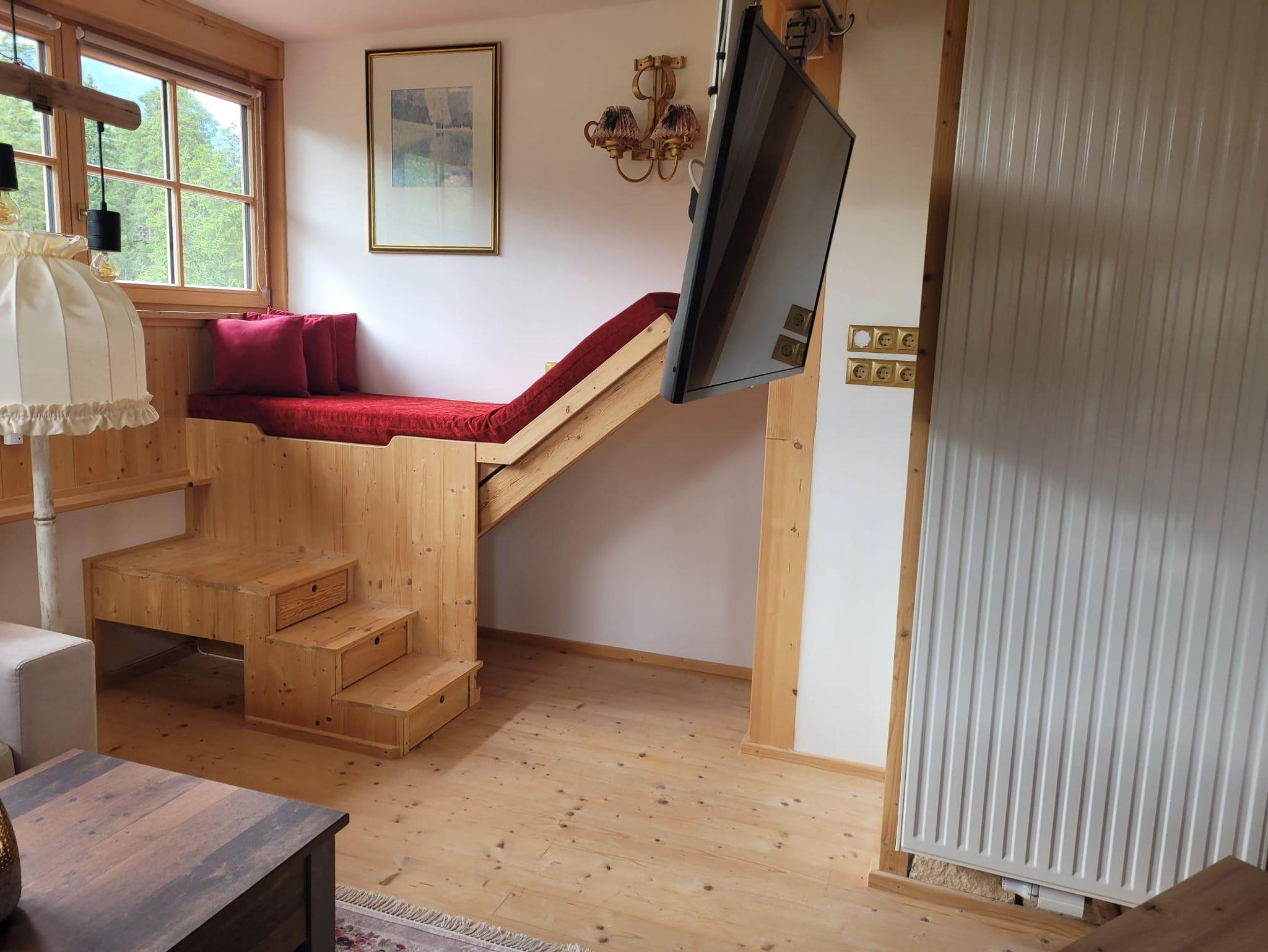 Loipen und die beleuchtete Rodelbahn direkt hinter dem Haus. Busstation in 100m, Skilift in Sichtweite.