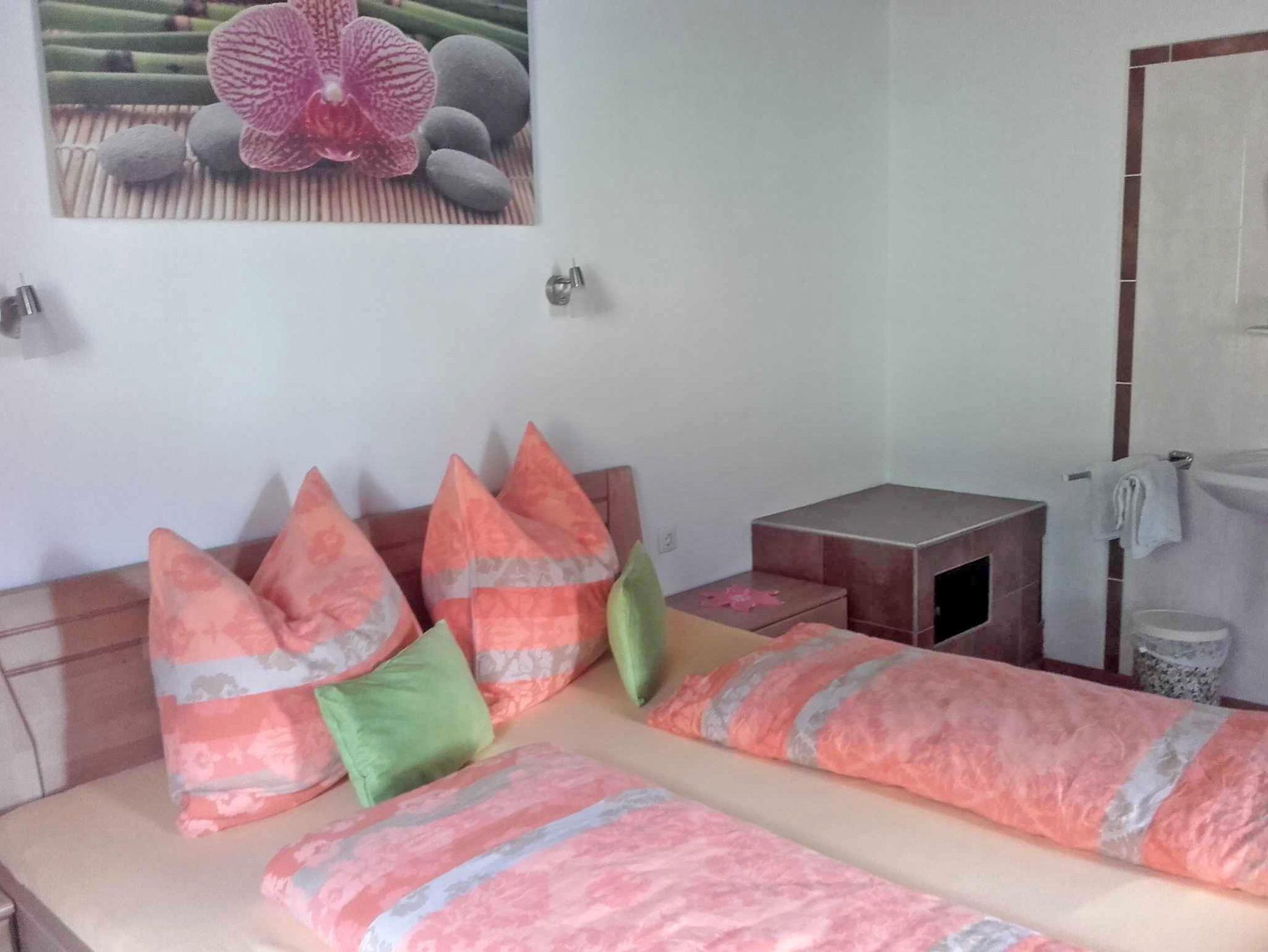 Unser Haus verfügt über ein Doppelzimmer und eine Ferienwohnung für 2 bis 4 Personen. Im Doppelzimmer befindet sich ein Doppelbett und es gibt ein Etagenbad und Etagen-WC. Unsere Ferienwohnung ist mit einer Wohnküche, einem Schlafzimmer mit Doppelbett und einem Stockbett, Dusche, WC, Balkon, TV, WLAN ausgestattet.