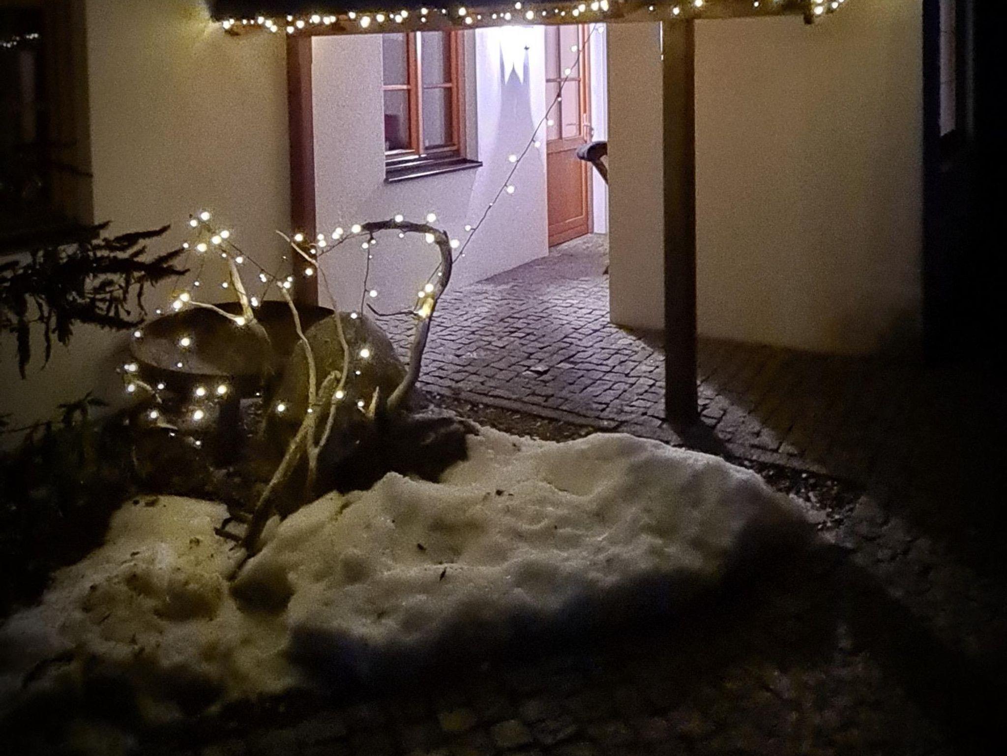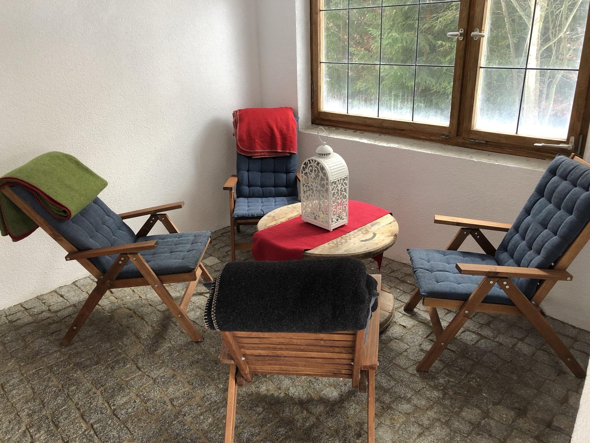 Direkt vor der Wohnung befindet sich ein Autoabstellplatz im Freien. Durch einen Seiteneingang gelangt man ins Haus. Im windgeschützten Eingangsbereich lädt eine gemütliche Sitzgruppe zum verweilen im Freien.