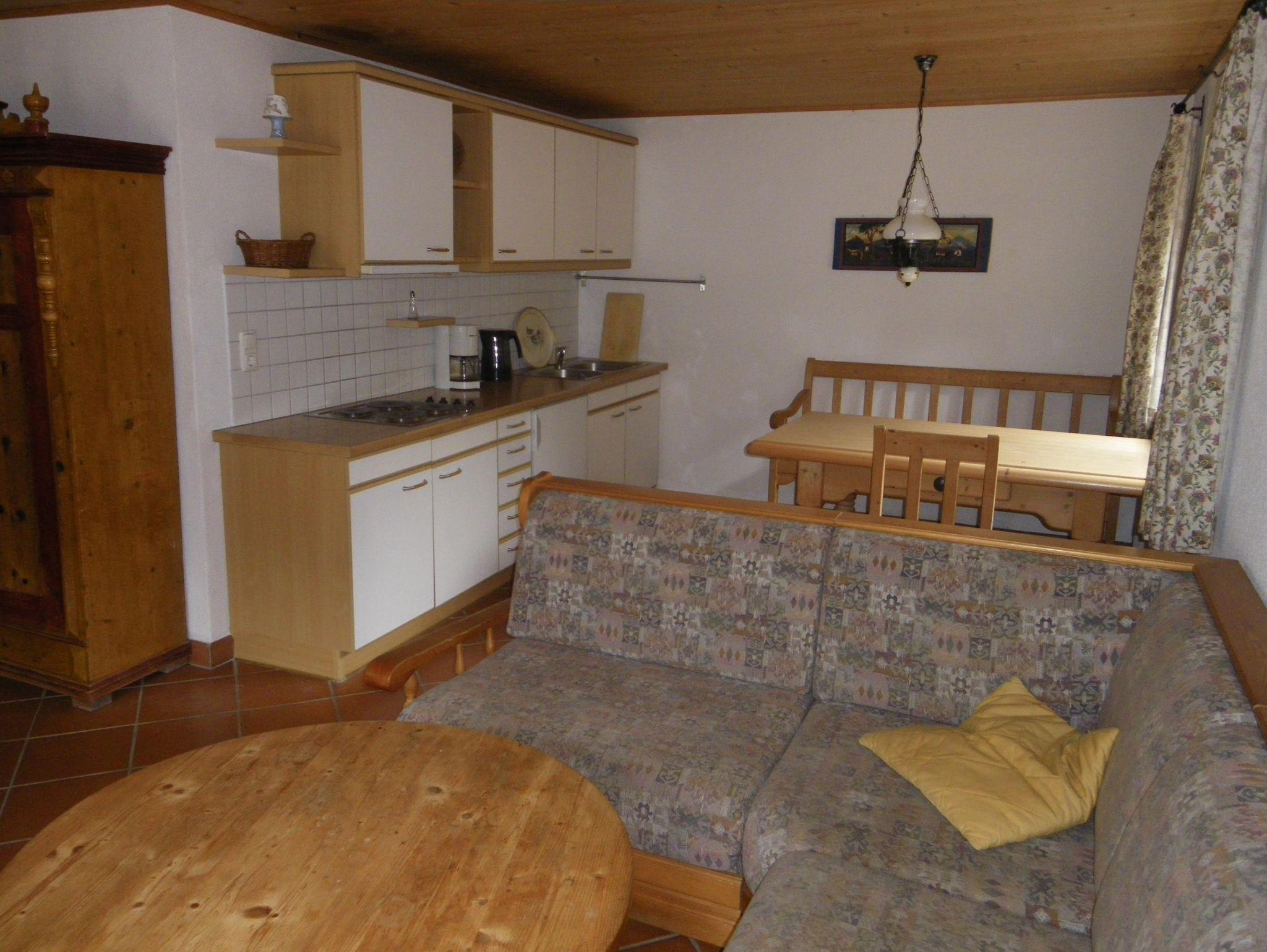 Die Ferienwohnung verfügt über ein Elternschlafzimmer und einem Kinderzimmer, eine große Wohnküche mit Esstisch und gemütlicher Sitzecke sowie einem Badezimmer (Dusche/WC). Die Wohnung ist mit Massivholzmöbel im Tiroler Landhausstil ausgestattet und verfügt über eine große Süd-Sonnenterrasse.