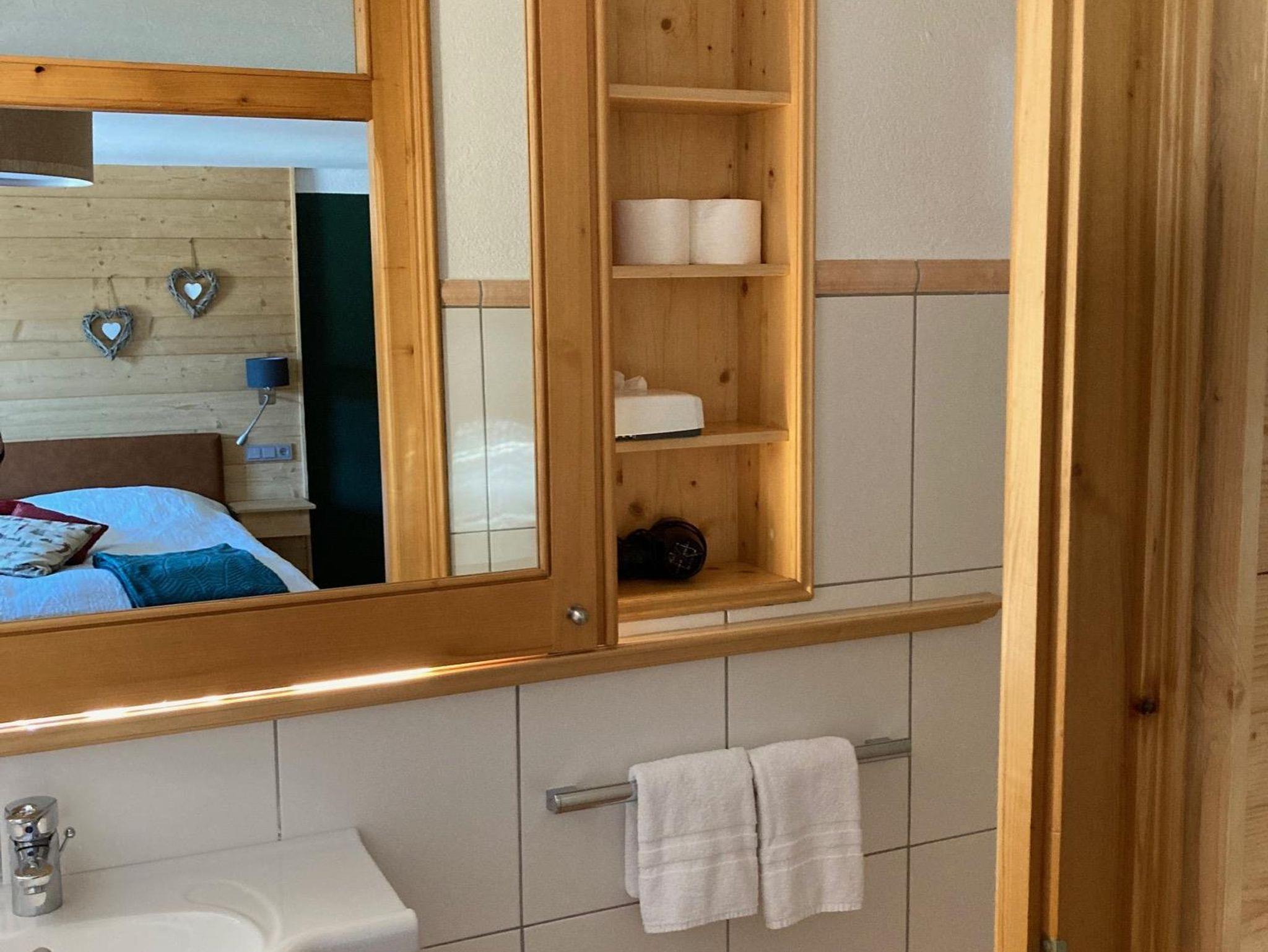 Unsere Gästezimmer wurden mit den Möbeln unserer Großeltern eingerichtet. Holzboden und TV.