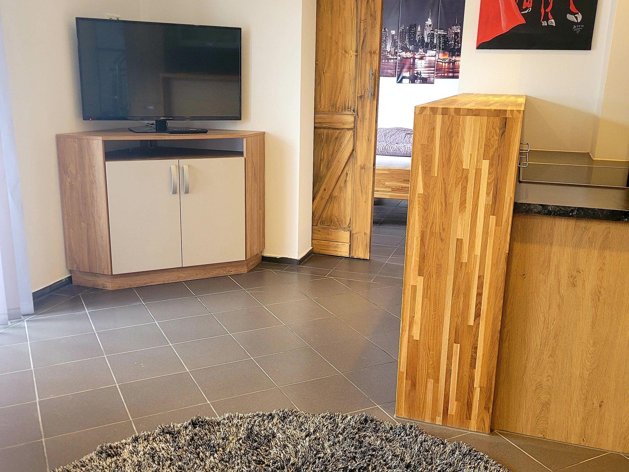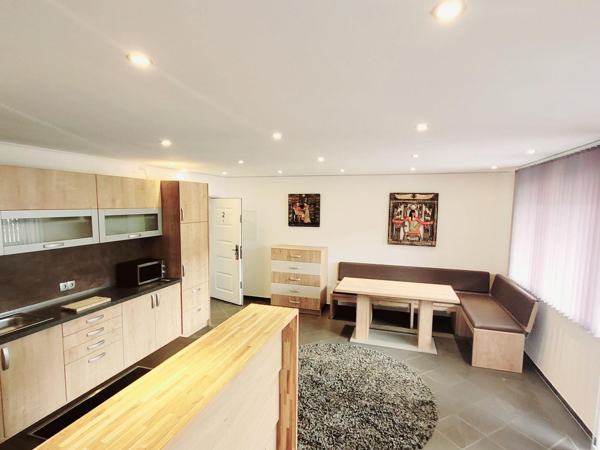 Die Wohnung ist aufgeteilt in ein sepparates Schlafzimmer, einer großzügigen Wohnküche und einem Bad mit Dusche.