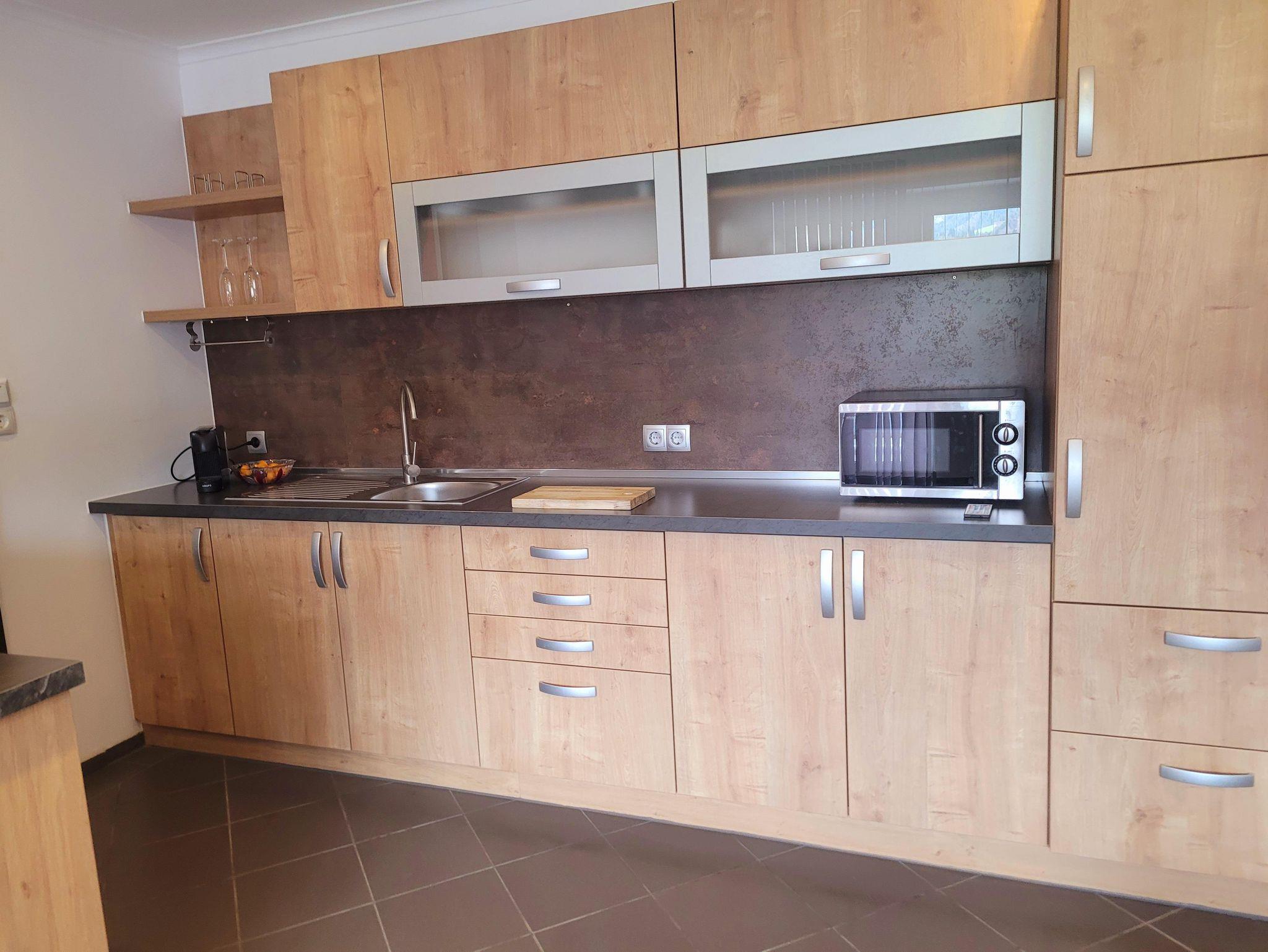 Auch eine Kaffemaschiene, Backofen und eine Mikrowelle stehen für euch bereit.