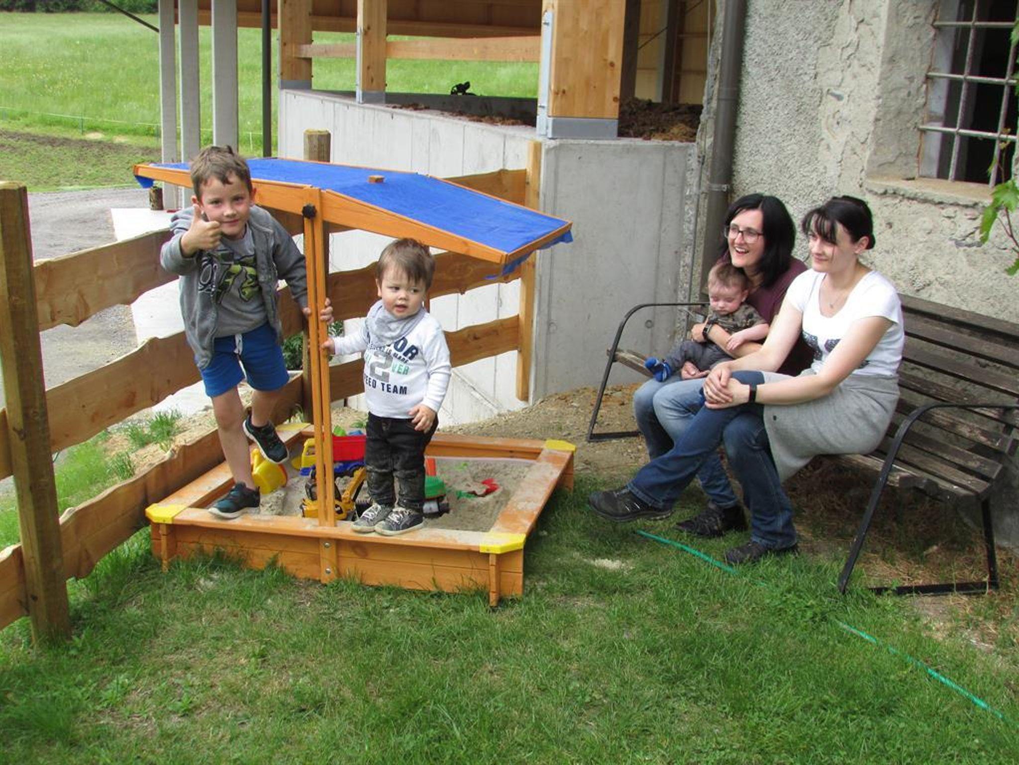 Kinder finden am angeschlossenen Bauernhof (Mutterkühe mit ihren Kälbern, Kaninchen, Meerschweinchen, Katzen) schnell Freunde. Kinder dürfen im Winter bei der Stallarbeit am Bauernhof mithelfen und lernen so das bäuerliche Leben auf einem Bergbauernhof näher kennen.