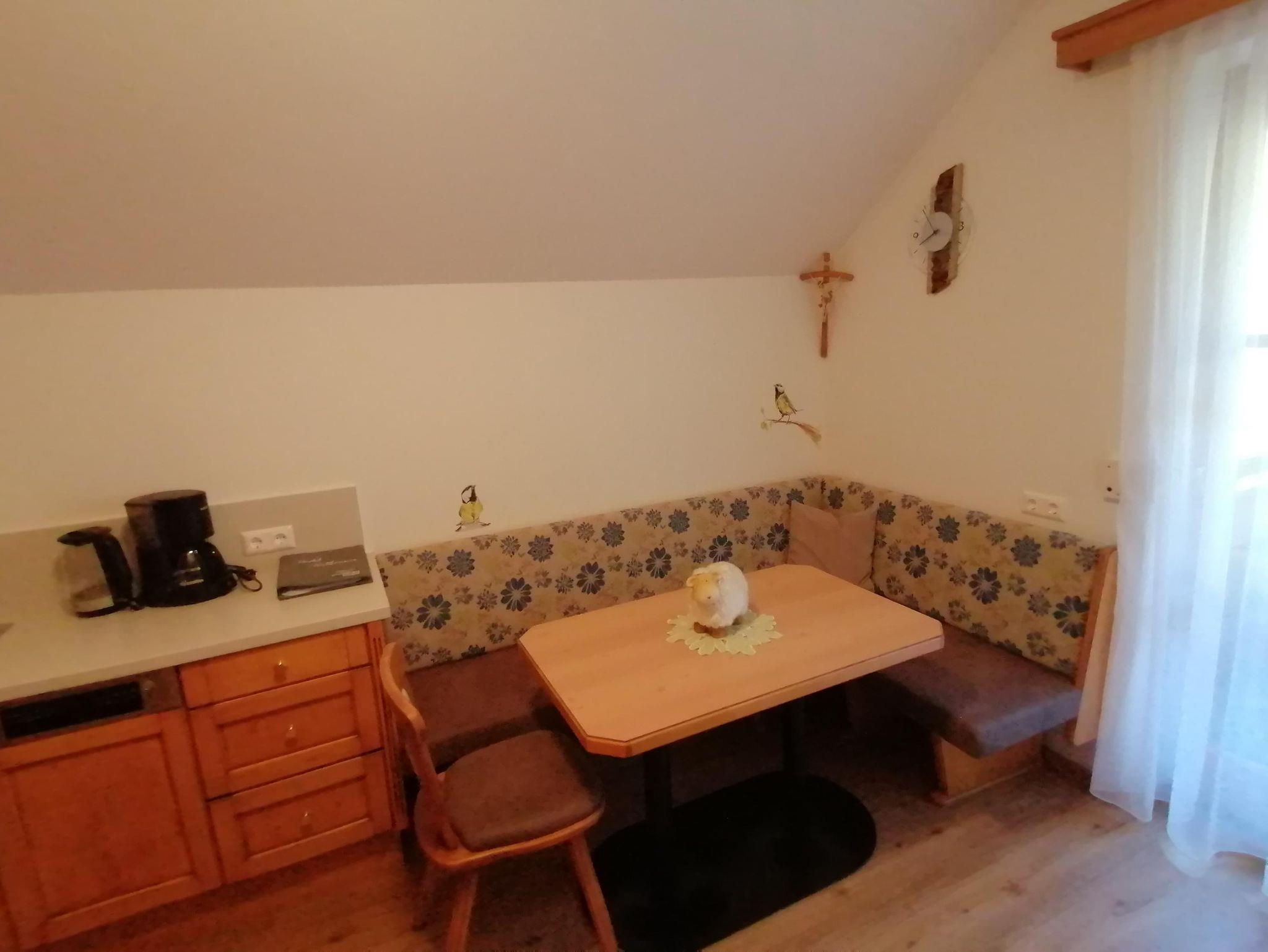 50 m2 Wohnfläche im 2. Stock laden ein zum Wohlfühlen. Die Ferienwohnung bietet Platz für 2 bis 3 Personen und ist ausgestattet mit Fichtenholzmöbeln und Holzböden, kleine Wohnküche mit gemütlicher Sitzecke, Kühlschrank, Mikrowelle, Kaffeemaschine, Wasserkocher, E-Herd mit Backrohr, Geschirrspüler, 2 getrennte Doppelbettzimmer und Einzelbettzimmer, Flachbildschirm mit SAT-TV, Radio, gratis W-LAN, Dusche und WC, Fön, Süd - Balkon mit Sitzgelegenheit und Hängesessel.