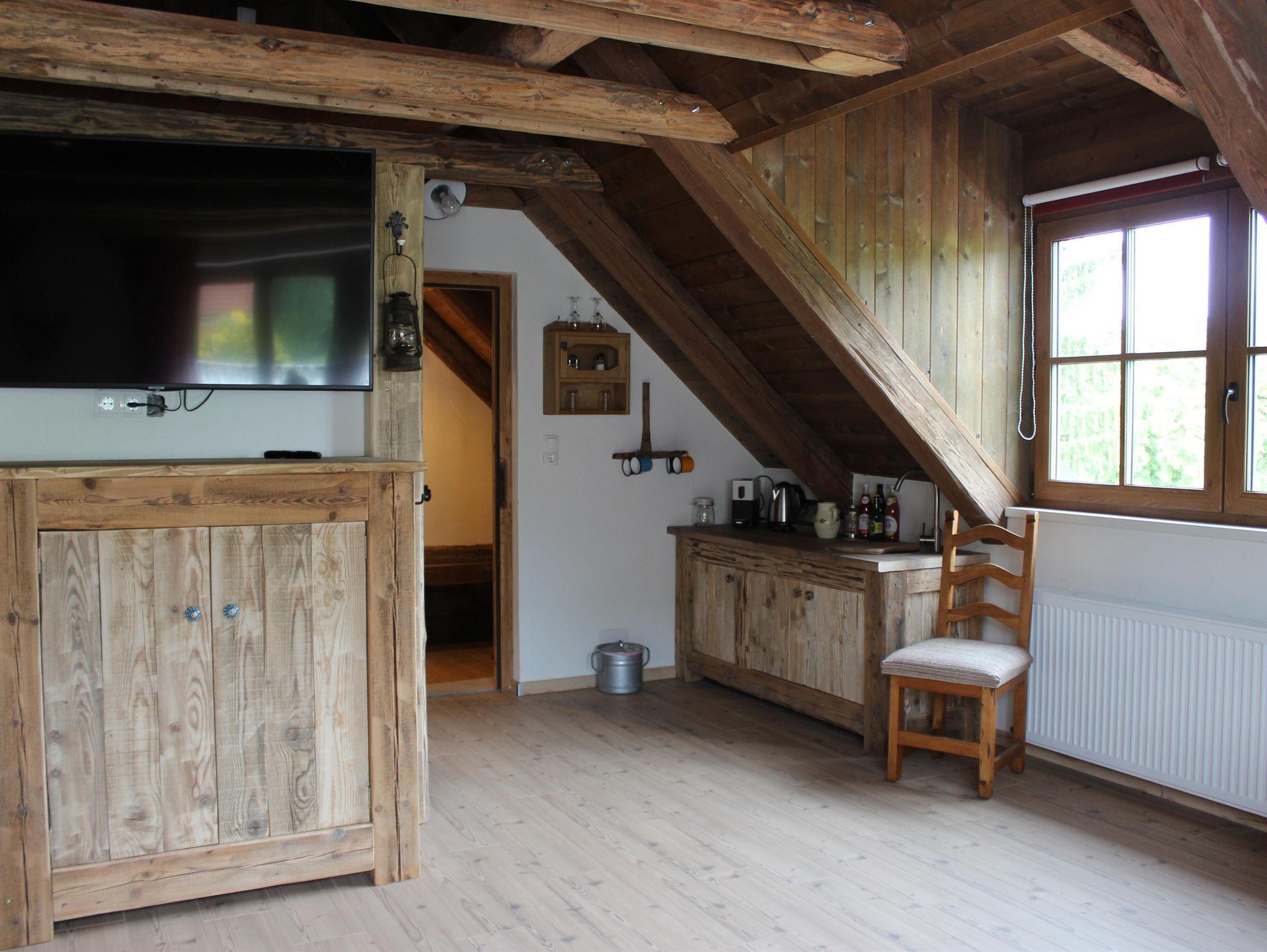 Unser Zimmer Heuboden ist nach seiner früheren Verwendung benannt. Hier schlafen Sie auf einem extra hohen, aus Altholz gefertigtem Doppelbett, mit Blick durch 2 Panoramafenster Richtung Kulm und Richtung See. Die offene Regenfalldusche ist eingebettet in den alten Dachstul. Die große Couch läd ein zum entspannen und gerne auch das Frühstück zu genießen. Ideal für ein paar erholsame Tage zu zweit.