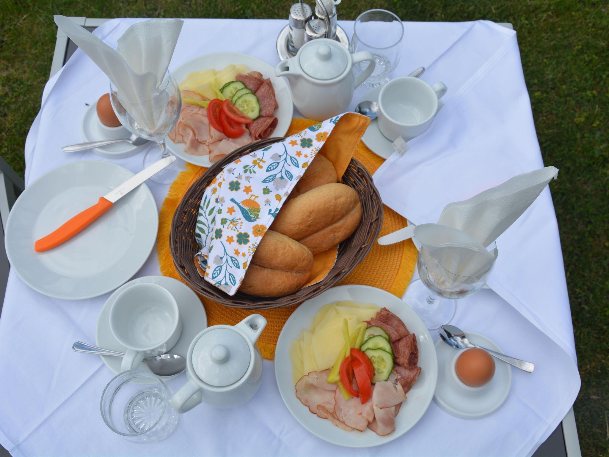 Bei Sonnenaufgang können Sie draußen frühstücken und den Tag mit einer herrlichen Aussicht beginnen wo Sie hausgemachte Säfte, Marmeladen, Eier, reginoles Joghurt, saisonales Obst und Gemüse vom eigenen Garten genießen können.