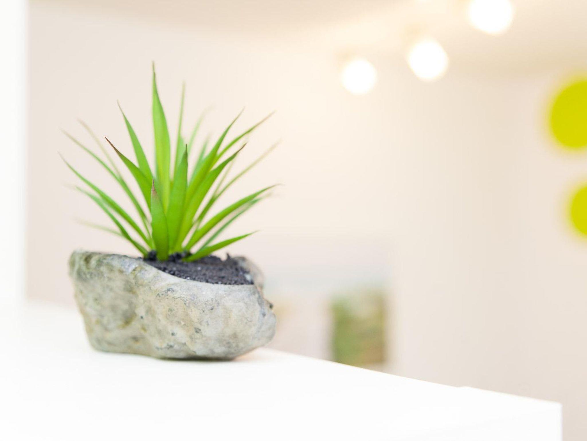 • Küche mit Esstisch, Kücheninsel und Aufenthaltsbereich mit Couch und Schminktisch. Induktionsherd, Kühlschrank, Backofen-Mikrowelle-Kombi, Kaffeemaschine, Wasserkocher.