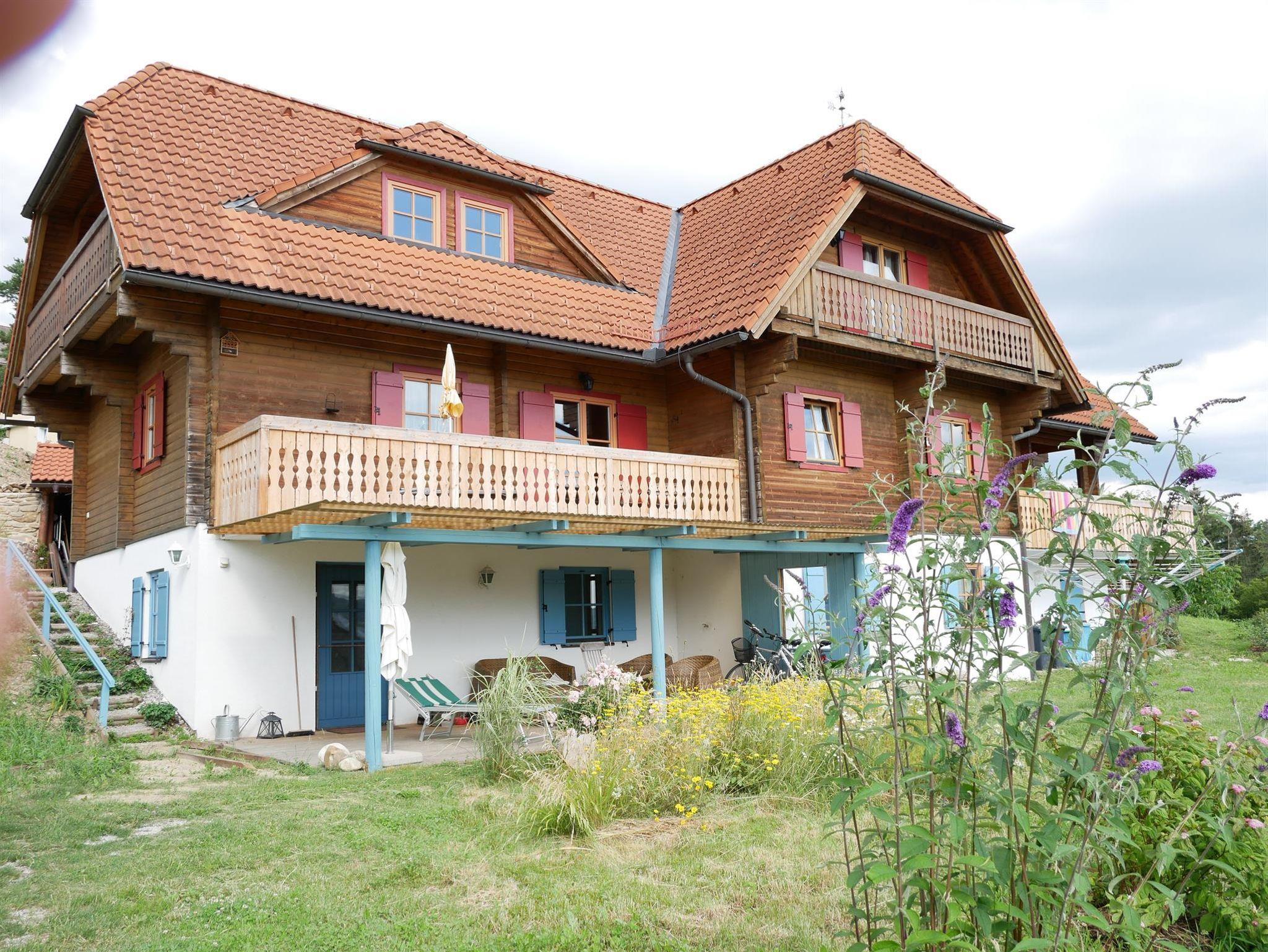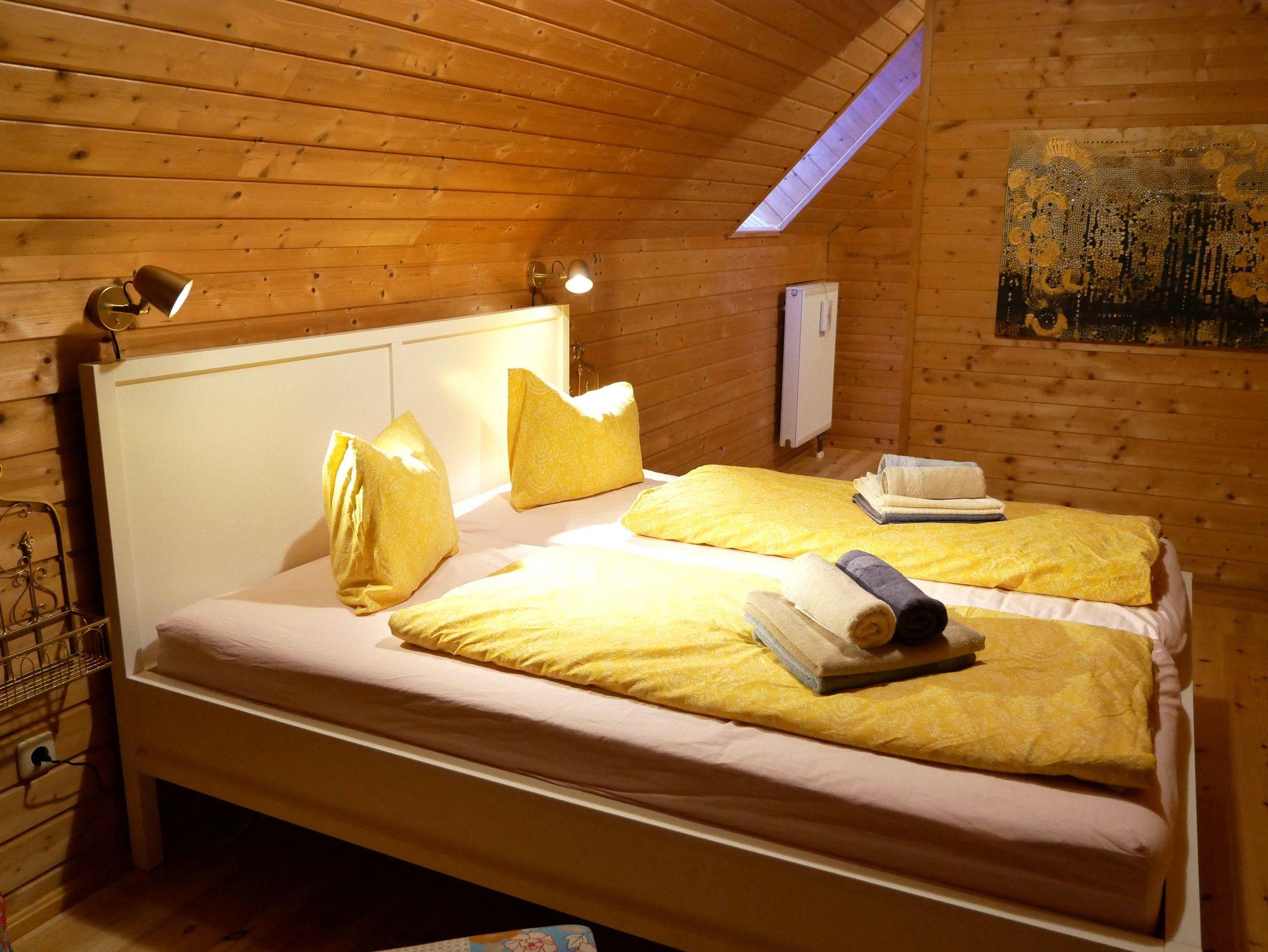 Unser Appartement Sonnenuntergang ist sehr geräumig (90 m2) und auf zwei Etagen aufgeteilt. Im Erdgeschoß befindet sich der Eingangsbereich, eine kleine Toilette, Küche (mit Gefrieschrank und Geschirrspüler), Essbereich und ein durch einen Vorhang abgetrennter Schlafbereich (Doppelbett). Vom Balkon mit hat man einen schönen Blick auf den See. Im 1. Stock befindet sich das Badezimmer mit Waschmaschine, Badewanne (auch als Dusche benutzbar) und WC, sowie ein weiteres geräumiges Schlafzimmer (Doppelbett) mit Umkleidebereich. Seit heuer gibt es im Eingangsbereich noch einen privaten Sitzplatz mit Grillmöglichkeit. Die Inneneinrichtung unserer Ferienwohnung Sonnenuntergang zeichnet sich durch den massiven Holzbau vor allem durch das Hüttenfeeling aus.