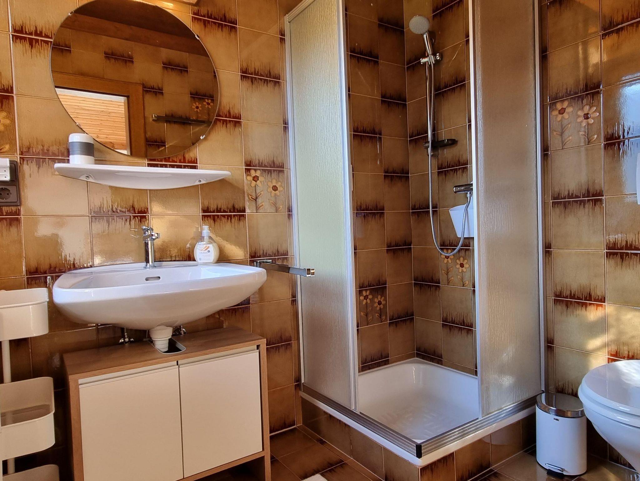 - Ein großes Duschbad mit 2 Duschköpfen