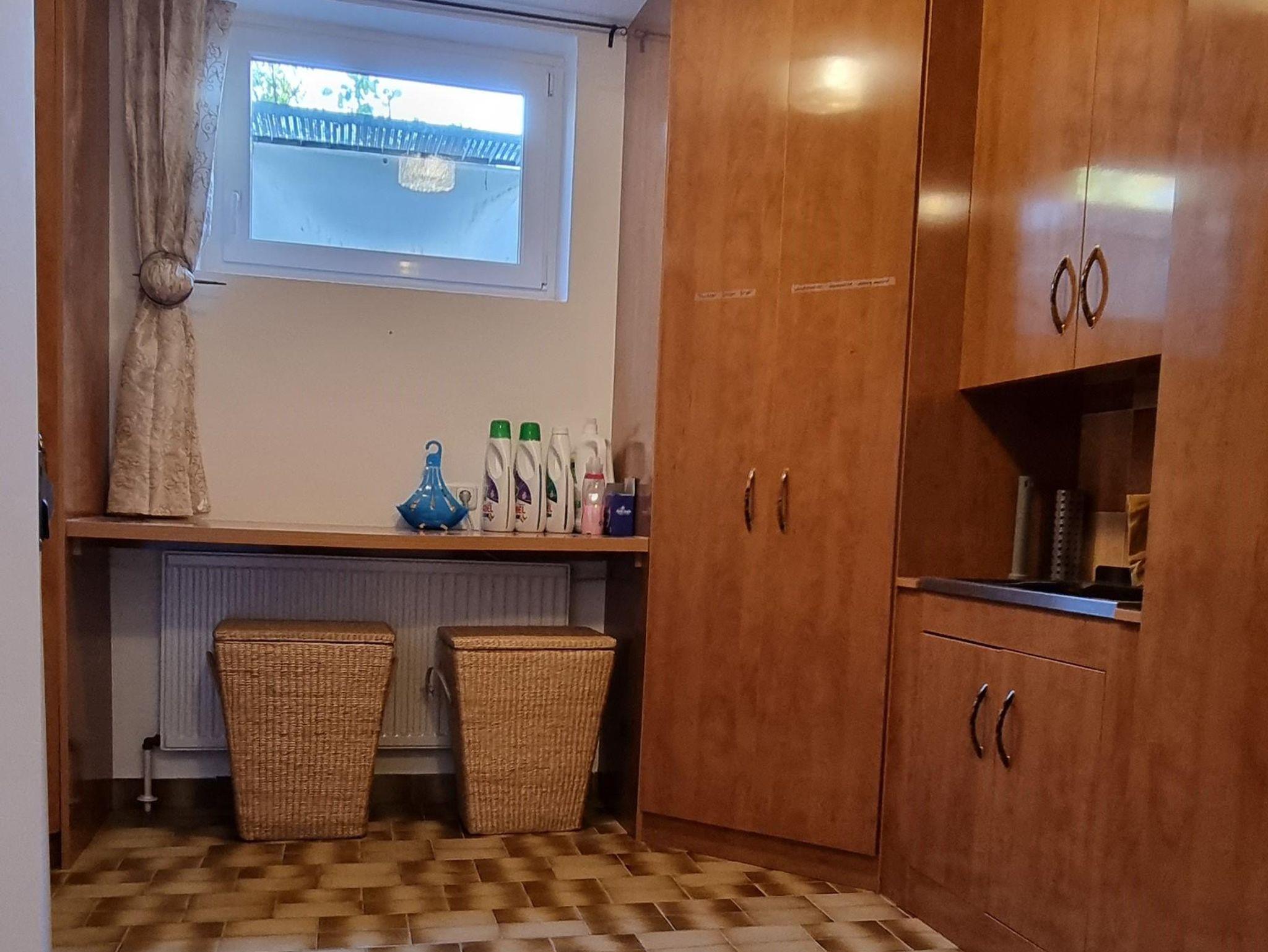 - Ein separater Waschraum, in dem Sie die Waschmaschine, den Trockner und das Bügelbrett benutzen können