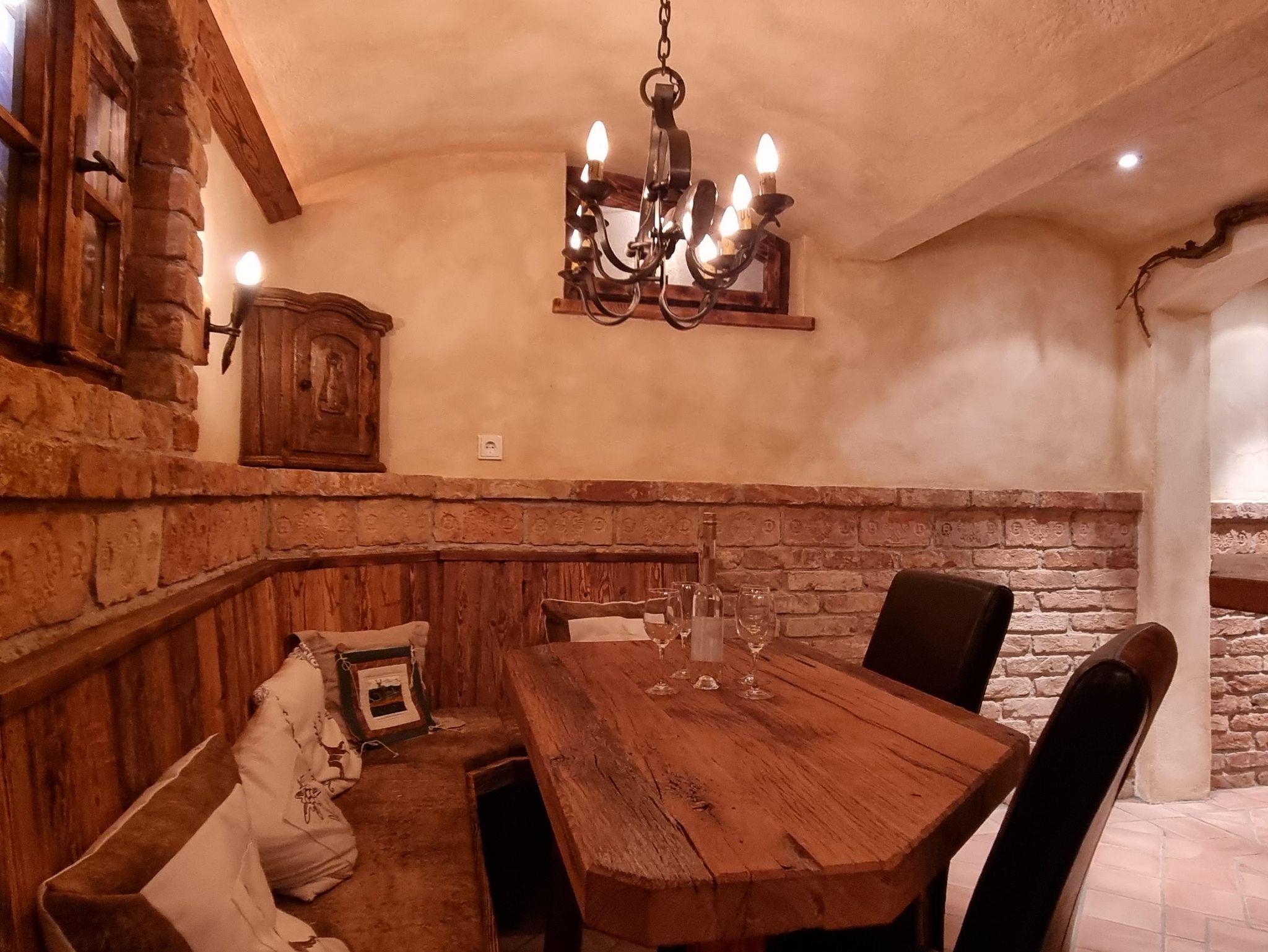 - Ein authentisch eingerichteter Weinkeller, in dem Sie die Gesellschaft des anderen genießen können