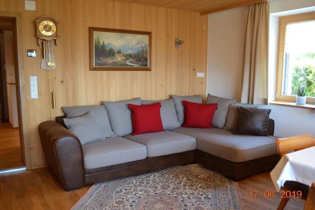 Vores ferielejlighed er ny og meget komfortabelt indrettet. Vi tilbyder dig en rummelig ferielejlighed til op til 5 personer. Ferielejligheden Panorama fer har to soveværelser med dobbeltsenge, 2 badeværelser og en balkon. Køkkenet er udstyret med alt. Ren fred og afslapning venter dig på terrassen og i haven. Hvis du overnatter 3 nætter eller mere, modtager du gæstekortet til fri afbenyttelse af diverse bjergbaner og andre aktiviteter. Bus svømmehaller museum mv. Guidede cykelture langs smukke skov- og engstier kan også tilbydes. Vi vil med glæde byde dig velkommen.
