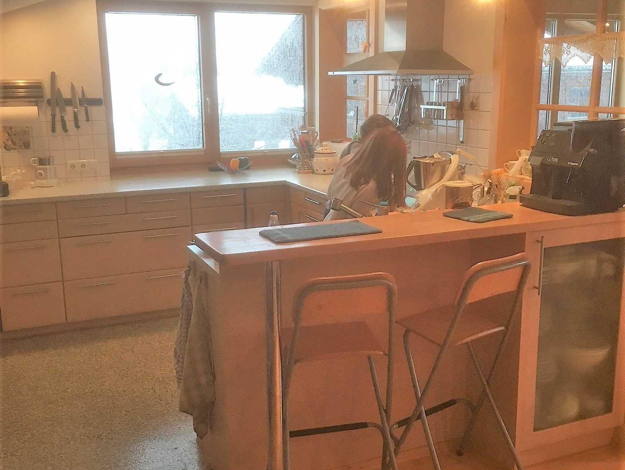 • Vier Plattenherd, Spülmaschine, Toaster, Mixer, Kaffeemaschine, Wasserkocher, Kühlschrank, komplettes Speise- und Kochgeschirr sowie Gläsersortiment, sämtliche Küchenwerkzeuge, Spülmittel und Geschirrtücher