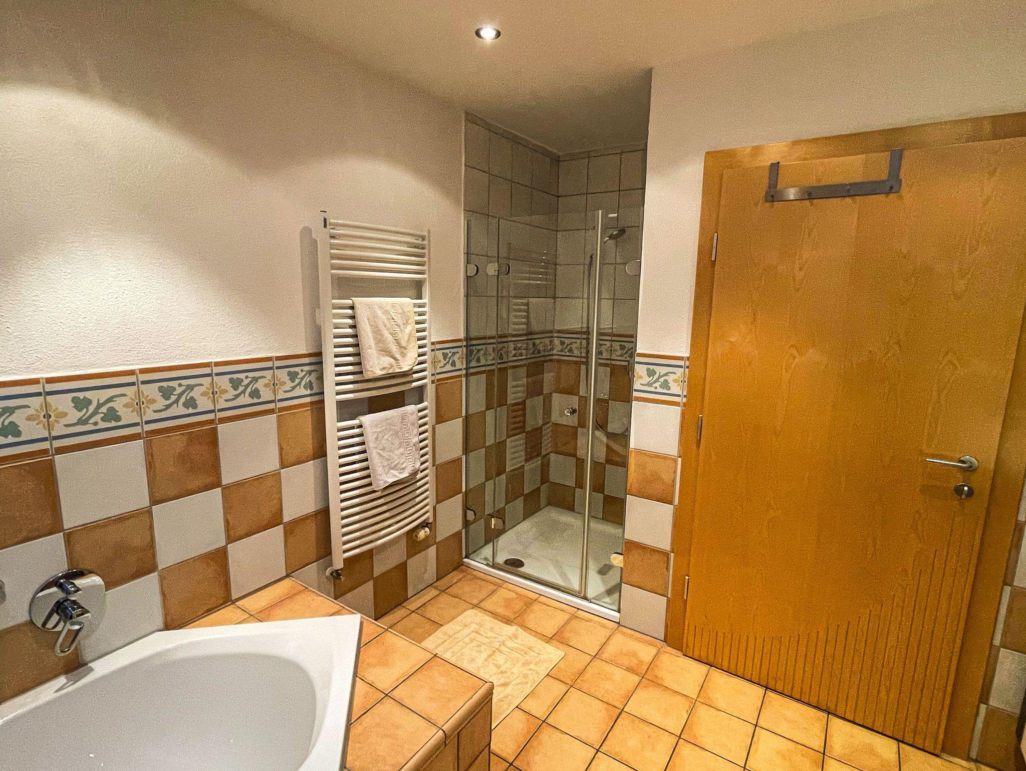 • Bad mit Doppelwaschbecken & Badewanne, zusätzliches extra WC;