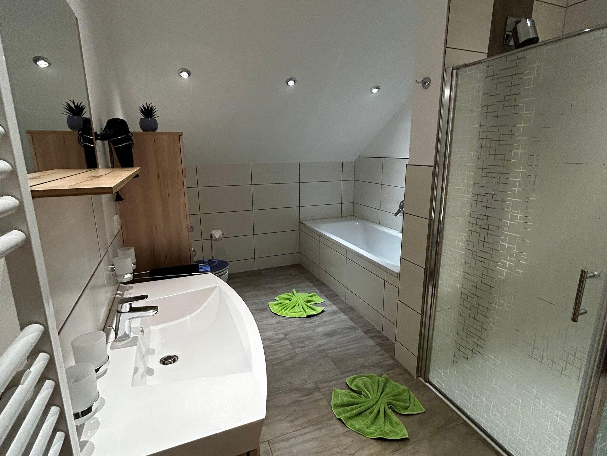• Bad mit Dusche, Badewanne & WC