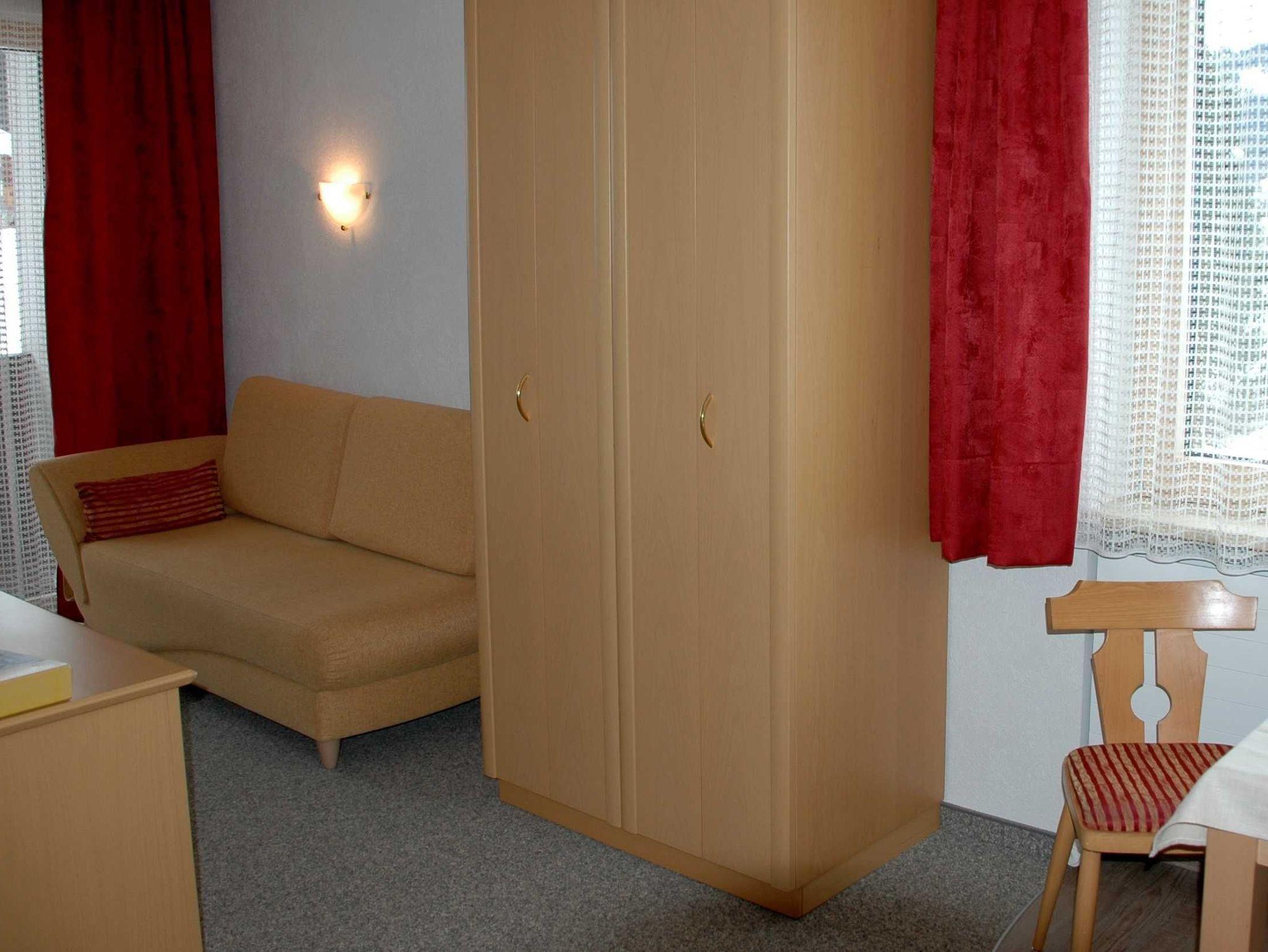 Helles Appartement ( ca. 35 m²) mit großem Westbalkon und Blick zur Roßalpe und in Richtung Vilsalpsee. Kleiner Wohnraum mit Sitzecke, Eßecke, Kochnische, DU/WC, Schlafraum, TV/Radio, Telefon.
