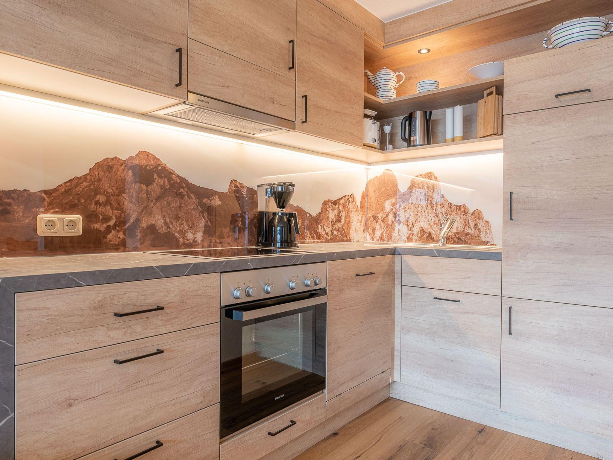 Apartment im Landhausstiel mit großen süd Balkon, Küche mit Backrohr und Geschierspüllmaschine. Gemütliche Doppelcouch